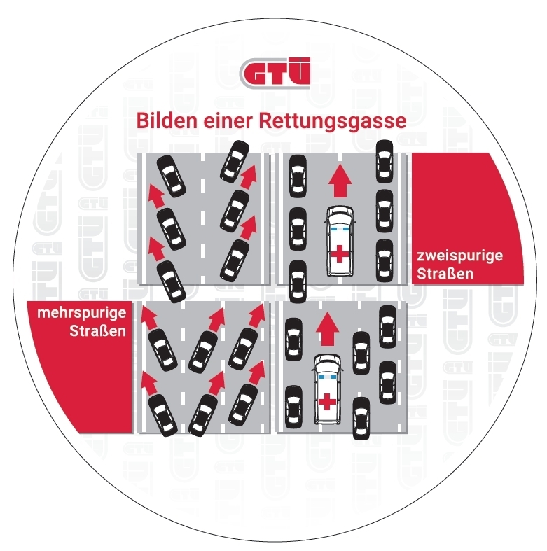 Wie’s geht, dafür hat die Gesellschaft für Technische Überwachung (GTÜ) eine Daumenregel im wahrsten Sinne des Wortes parat: Einfach von oben auf die rechte Hand mit gespreizten Fingern schauen – dann zeigen der Daumen nach links und die Finger nach rechts. Nach diesem Muster wird auch die Rettungsgasse gebildet: Die Fahrzeuge auf der äußerst linken Spur fahren an den linken Rand der Fahrbahn, und alle Spuren rechts davon weichen nach rechts aus. Der Standstreifen ist dabei aber tabu und muss ebenfalls freigehalten werden.