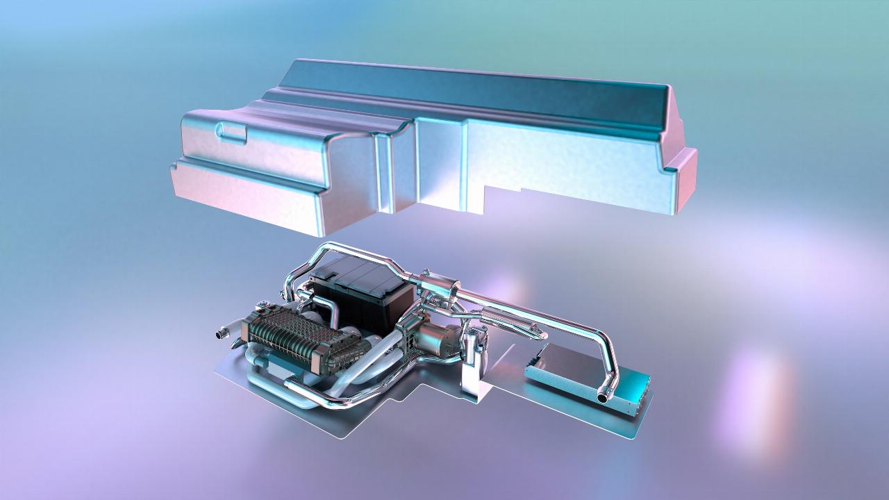 Für das Konzeptmodell wurde eigens eine neue Plattform entwickelt, die alle Elemente des Antriebs aufnehmen kann. Dabei wurde der Motor im Heck und der 2,5 Kilogramm schwere Wasserstofftank vorne untergebracht. Die Brennstoffzelle selbst liegt hinter der Batterie unter dem Boden.