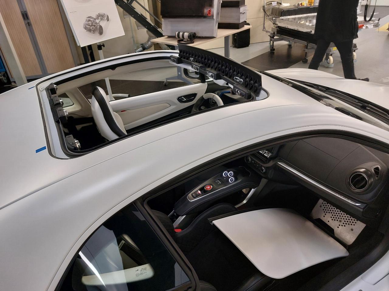 Während der elektrische A110 erst in drei Jahren vorgestellt wird, kommt wahrscheinlich im kommenden Jahr ein A110 mit offenem Dach auf den Markt. „Viele Kunden fragen immer wieder nach einem offenen A110, und mit dem Targa-Dach reagieren wir auf diese Wünsche“, erklärt ein Renault-Sprecher. Die beiden Hälften des Dachs lassen sich einfach entfernen und in den beiden Kofferabteilen unterbringen. Zurzeit läuft die Homologation für die Frischluft-Variante.