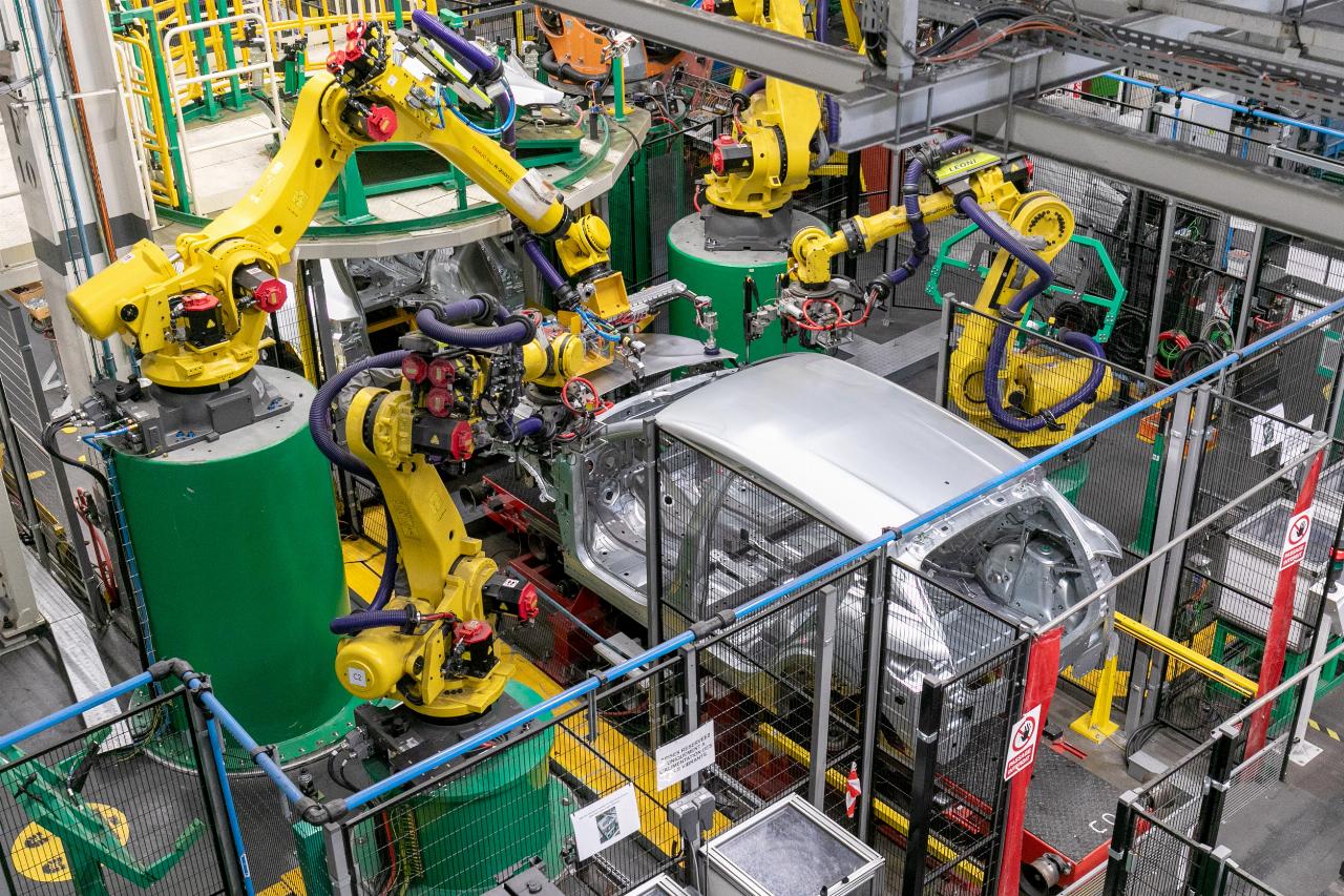 Die moderne Fabrik beschäftigt 5000 Mitarbeiter, die in einer vollständig vernetzten Welt arbeiten. Während kleine, vollständig automatisierte Transportwagen die Bauteile wie von Geisterhand an die Bänder befördern, laufen die Autos auf speziellen Plattformen, die sich auf die Körpergröße der einzelnen Monteure automatisch anpassen. Zuvor haben die Fahrzeuge den Karosseriebau passiert. Dort trifft man bestenfalls auf ein paar Arbeiter. Sie wurden, wie in anderen Werken auch, längst von hochflexiblen Robotern abgelöst, die millimetergenau jedes Auto zusammenschweißen.