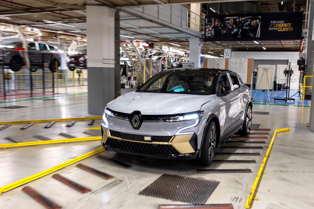Der Stromer steht auf der modularen CMF-EV-Plattform. Damit er reibungslos in den Produktionsprozess integriert werden konnte, investierte Renault mehr als 550 Millionen Euro in die Umgestaltung und Modernisierung der Fabrik. „Außerdem haben wir die Ergonomie der Arbeitsplätze verbessert“, fügt Luciano Biondo, der Direktor der Renault-Gruppe Electricity hinzu. Mit der Gründung der Tochtergesellschaft soll die Fabrik nicht nur zum Maßstab für die Qualitätsfertigung werden, sondern Renault einen Wettbewerbsvorteil verschaffen. Daher wurde für den Mégane E-Tech Electric eigens eine neue Montagelinie errichtet, die jedoch anschließend nahtlos in die Gesamtfertigung übergeht. Danach läuft der elektrische Mégane gemeinsam mit den anderen Modellen mit Verbrennungsmotor in einer Produktionsline durch die Hallen.