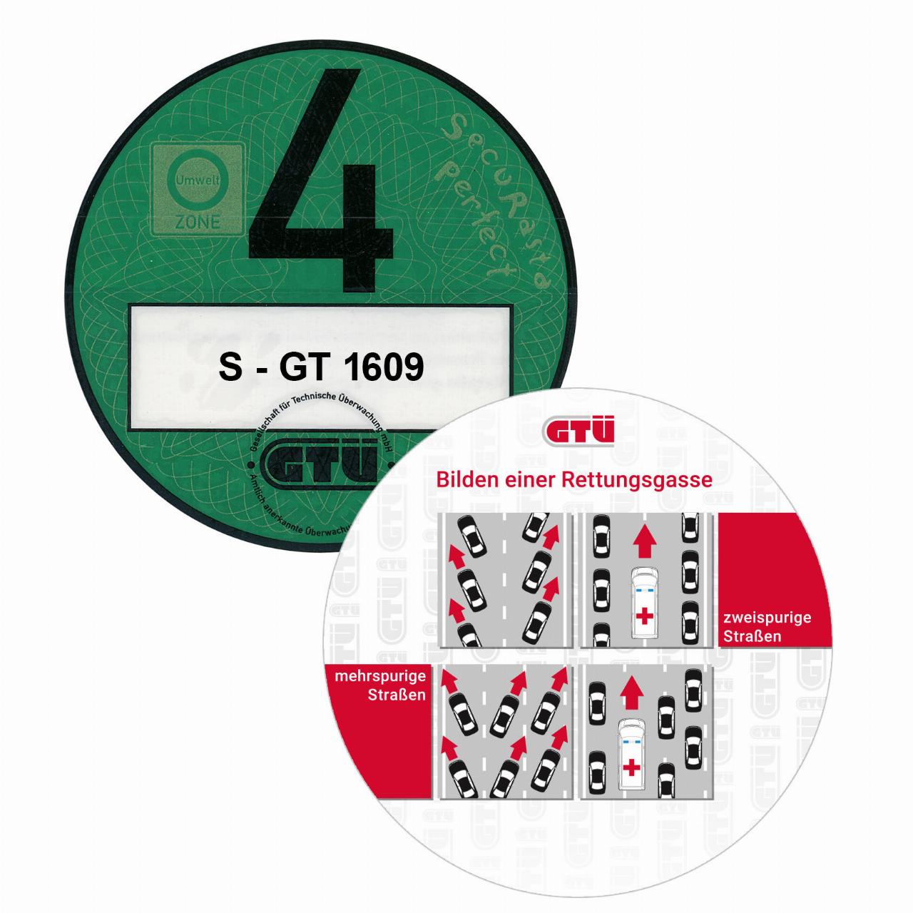 Doch wie sieht eine korrekte Rettungsgasse aus? Eine im Wortsinne simple Daumenregel empfiehlt die Gesellschaft für Technische Überwachung (GTÜ): Einfach von oben auf die rechte Hand mit gespreizten Fingern schauen – dann zeigen der Daumen nach links und die Finger nach rechts. Nach diesem Muster wird auch die Rettungsgasse gebildet. Die Fahrzeuge auf der äußerst linken Spur fahren an den linken Rand der Fahrbahn, und alle Spuren rechts davon weichen nach rechts aus. Aber Vorsicht: Der Standstreifen muss frei bleiben. Die Kfz-Überwachungsorganisation bietet dazu seit 2020 eine weitere clevere Gedächtnisstütze: Die Rückseite der von den GTÜ-Partnern auf der Windschutzscheibe angebrachten grünen Umweltplakette zeigt eine Grafik, wie man sich im Stau richtig verhält.