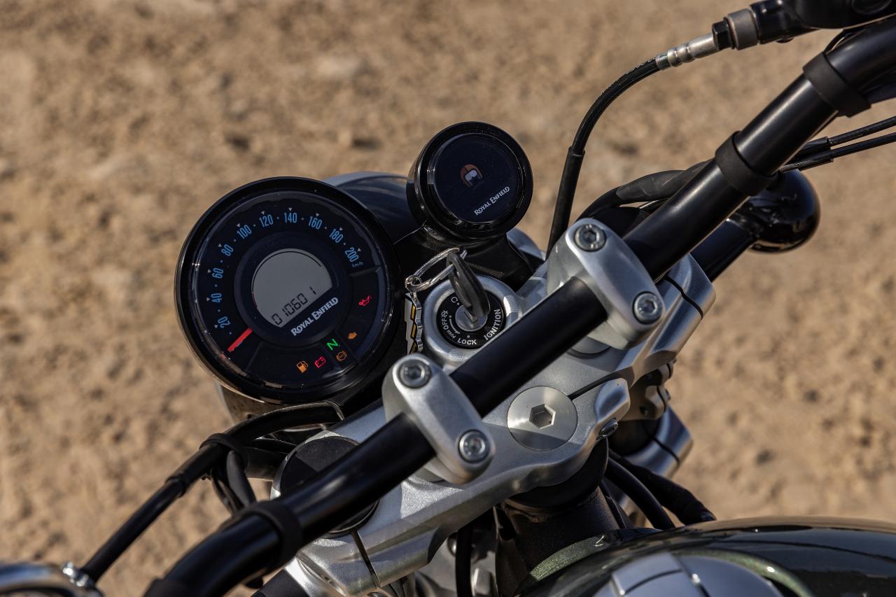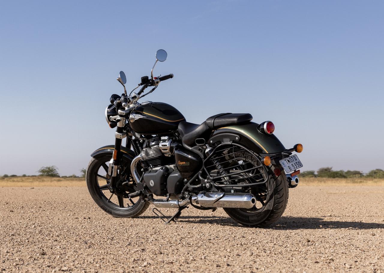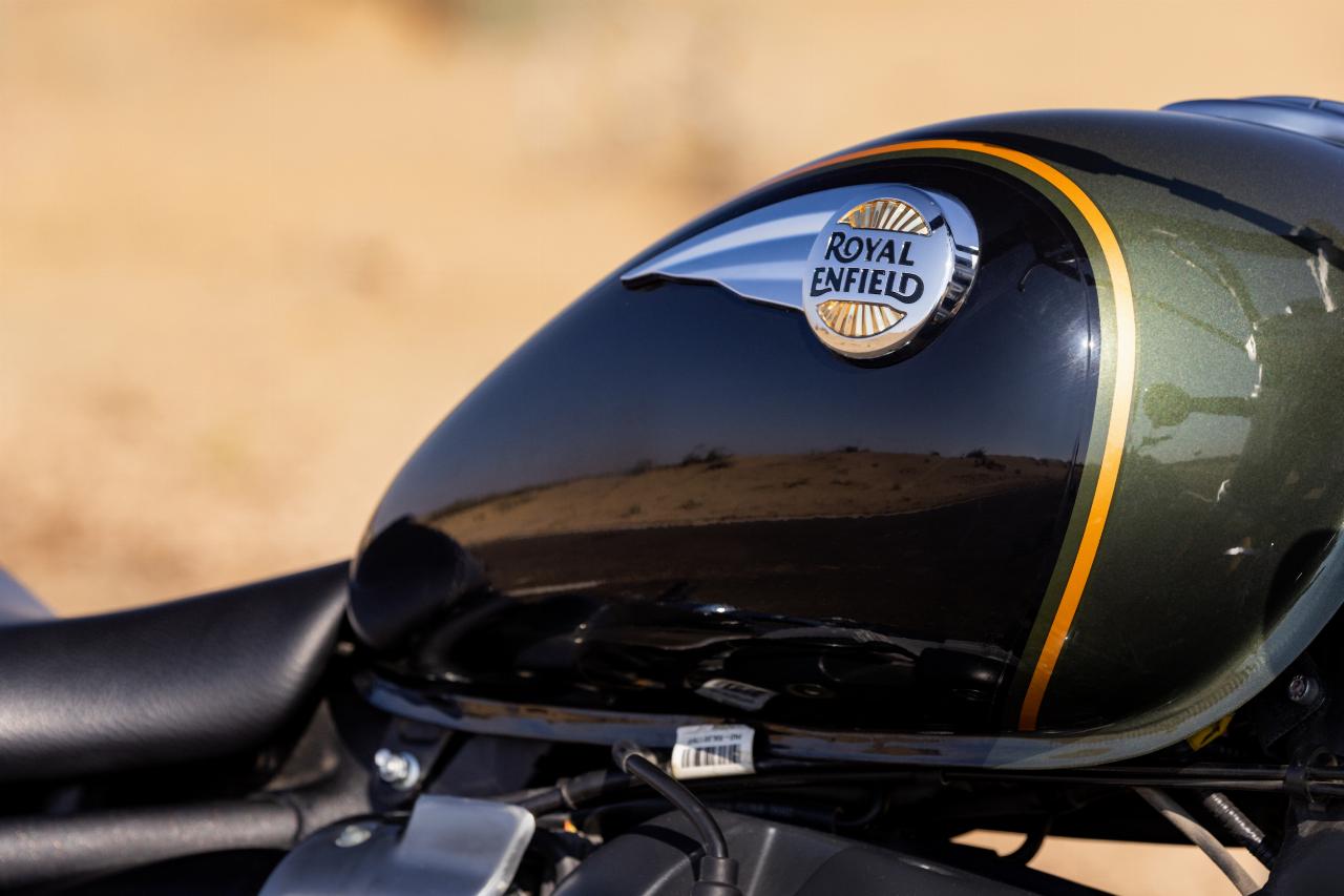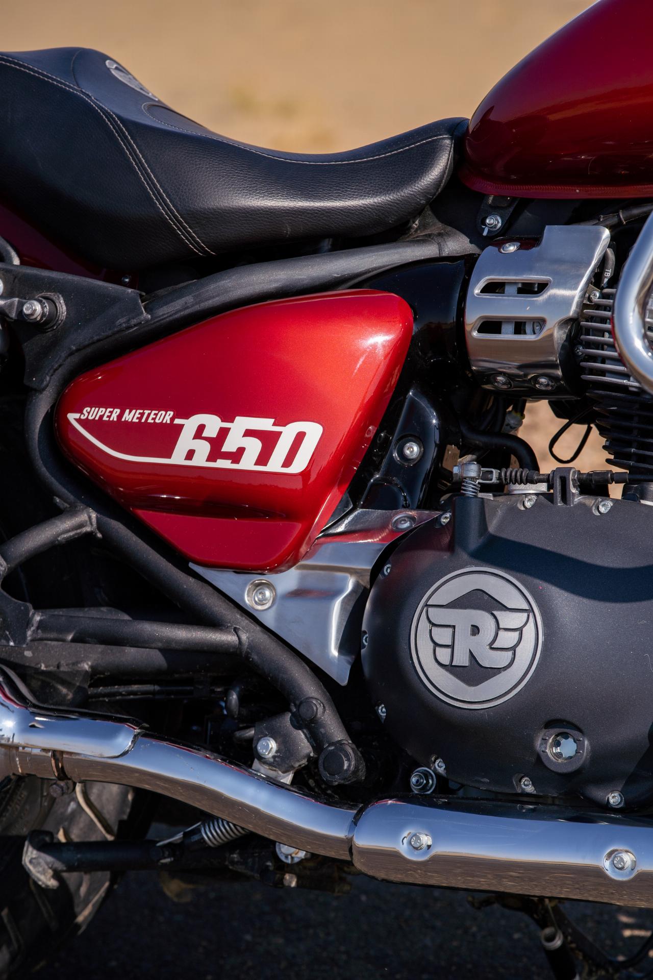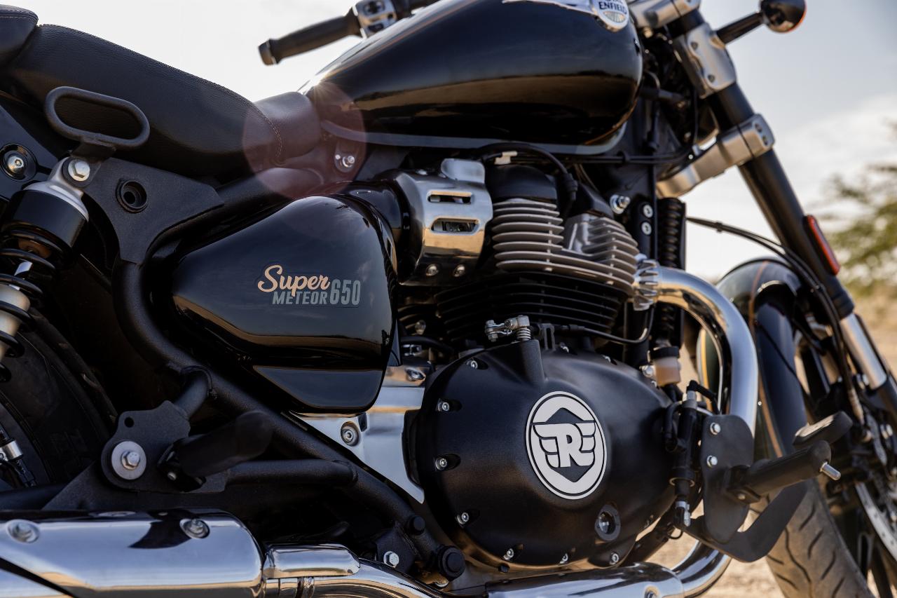 Die Super Meteor 650 kommt in Basis- und 500 Euro teurerer Solo-Tourer-Ausführung. Sie verfügt als erste Royal Enfield über eine Upside-down-Gabel. Vorne ist ein 19-Zoll-Rad montiert, hinten sind es 16 Zoll. Zur Ausstattung gehören ein analoger Tacho und ein LCD-Display, verstellbare Kupplungs- und Bremshebel, LED-Scheinwerfer sowie neue Drehschalter aus beschichtetem Aluminium, eine USB-Buchse und das von der Metor 350 bekannte Turn-by-Turn-Navigationsmodul. Dazu gibt es ein klassisches Markenemblem aus Chrom am Tank. (aum)