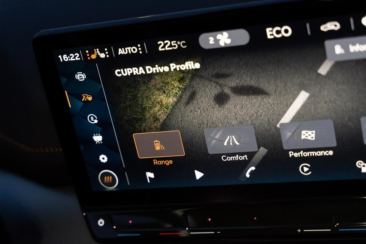 Über die Auswahl des passenden Fahrprofils lässt sich die Reichweite bei jedem Wetter beeinflussen. Die meisten Elektroautos bieten heute die Möglichkeit, solche Fahrprofile zu wählen. Beim Cupra heißt die passende Eingabe „Range“ wie Reichweite. Dieser Fahrmodus unterstützt eine effiziente Fahrweise. Oft helfen dann auch Anzeigen im Digital Cockpit mit Angaben zum aktuellen Stromverbrauch oder Hinweisen zu sparsamer Fahrweise.
