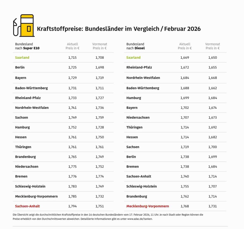 Für die heutige Untersuchung hat der ADAC die Preisdaten von mehr als 14.000 bei der Markttransparenzstelle für Kraftstoffe erfassten Tankstellen ausgewertet und den 16 Bundesländern zugeordnet. Die ermittelten Preise stellen eine Momentaufnahme von 11 Uhr dar. (aum)