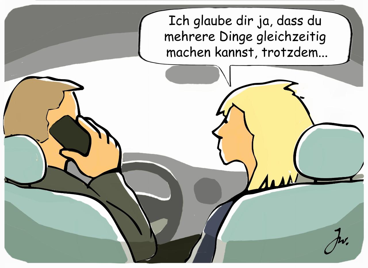 Doch trotzdem sieht man sie oft, die Fahrer, die auch in dichten Innenstadtverkehr für jeden sichtbar ihr das Telefon nutzen. Gefühlt wächst die Zahl derjenigen sogar, die man im Straßenverkehr ohne sichtbare Hemmungen mit dem Mobiltelefon am Ohr beobachten kann. Selbst die Strafen, die auf dieses Vergehen stehen, schrecken nicht genug ab. Nicht einmal die Sanktionen, die bei einem Unfall wegen nachweislicher Mobiltelefonnutzung am Steuer folgen können, halten Fahrer von der riskanten Unsitte ab. Immerhin droht mindestens ein Bußgeld von 100 Euro und ein Punkt in Flensburg, wenn man während der Fahrt telefoniert oder Nachrichten auf dem Smartphone checkt. Kommt es durch die Verwendung von elektronischen Geräten am Steuer zu einem Unfall mit Sachschaden, sieht der Bußgeldkatalog ein Bußgeld in Höhe von 200 Euro, zwei Punkte in Flensburg sowie einen Monat Fahrverbot vor.