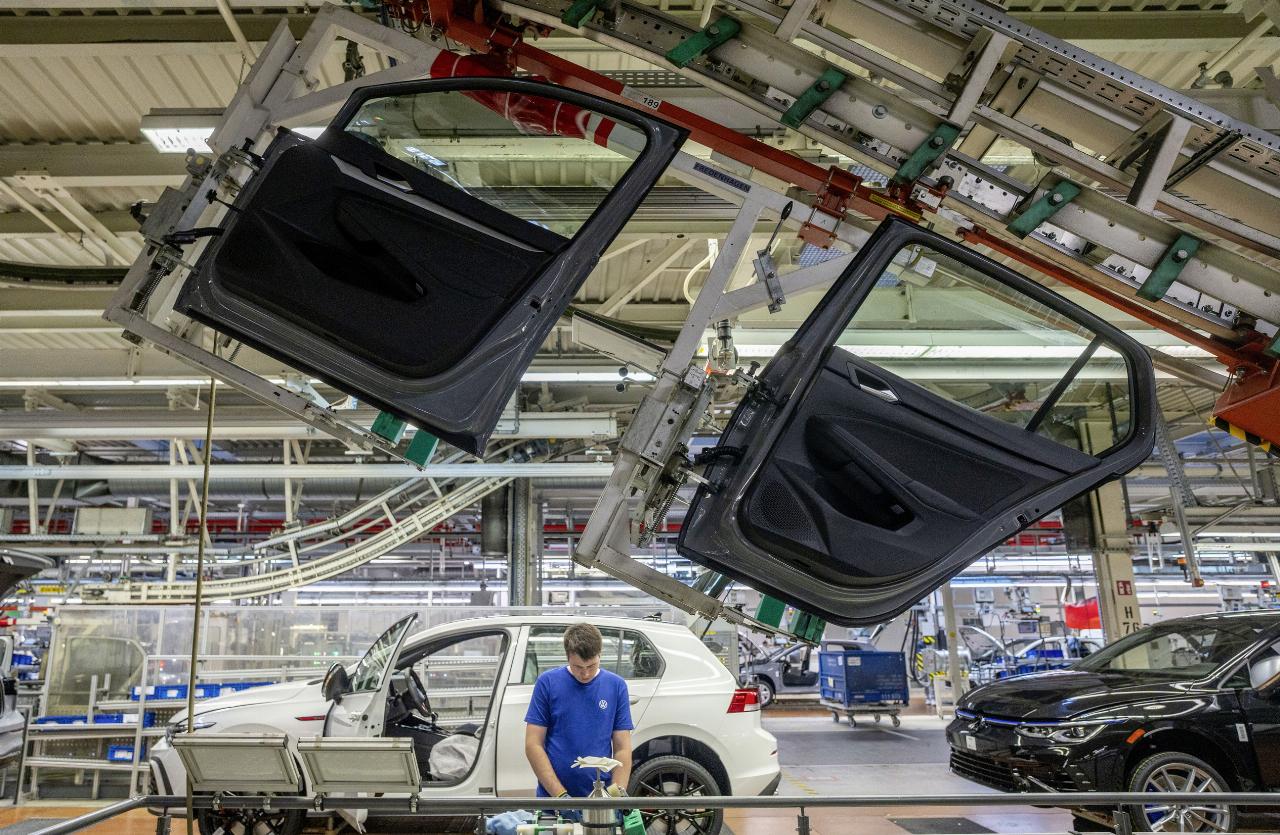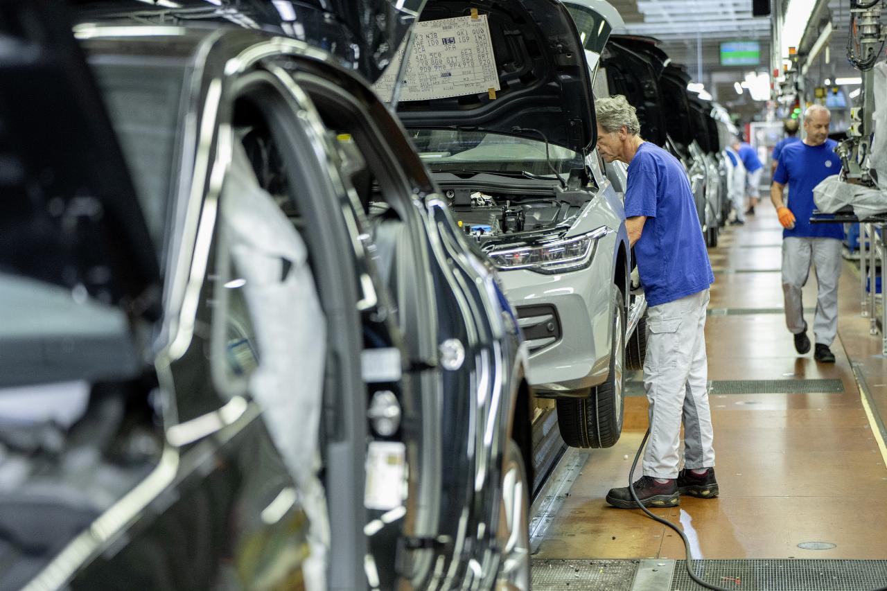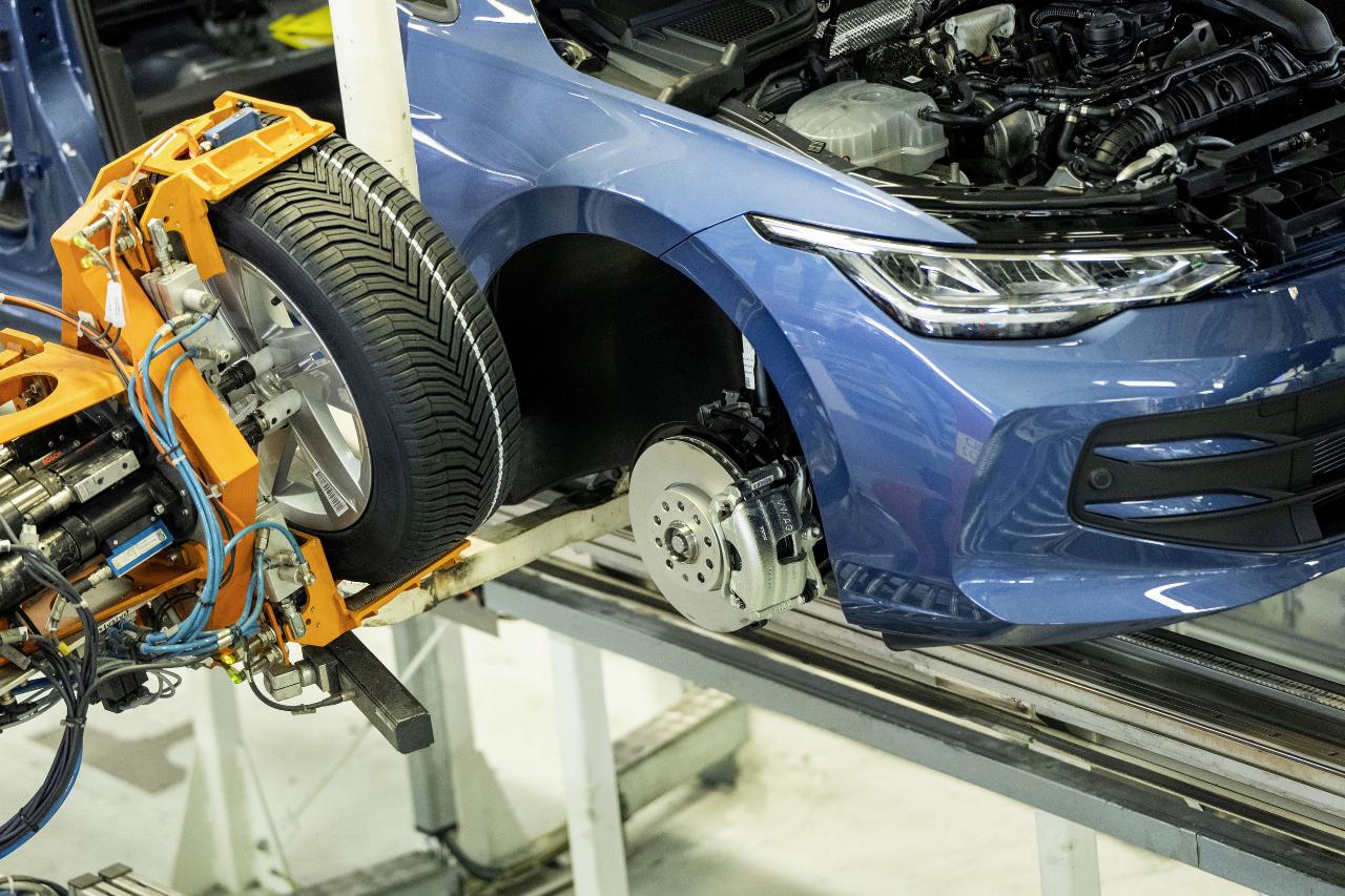Mitarbeiter stellten zum Jubiläum außerdem einen ganz besonderen Golf vor. Im Vorfeld hatten Beschäftigte, darunter viele Auszubildende, einen neuen Golf 8 mit einer Collage von Mitarbeiter-Bildern gestaltet. Das Unikat wird in Zukunft als Teil der internen Fahrzeugflotte im Werk unterwegs sein. (aum)