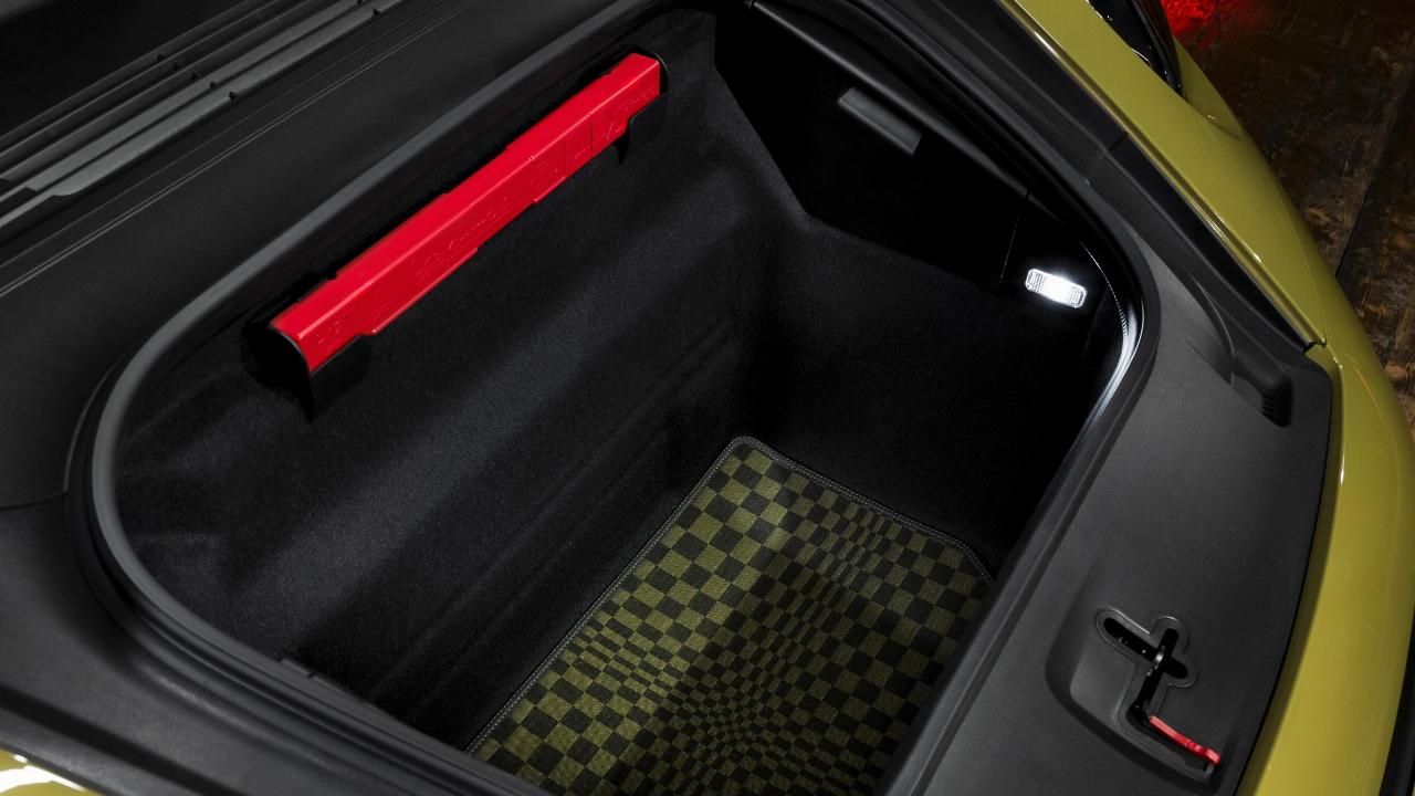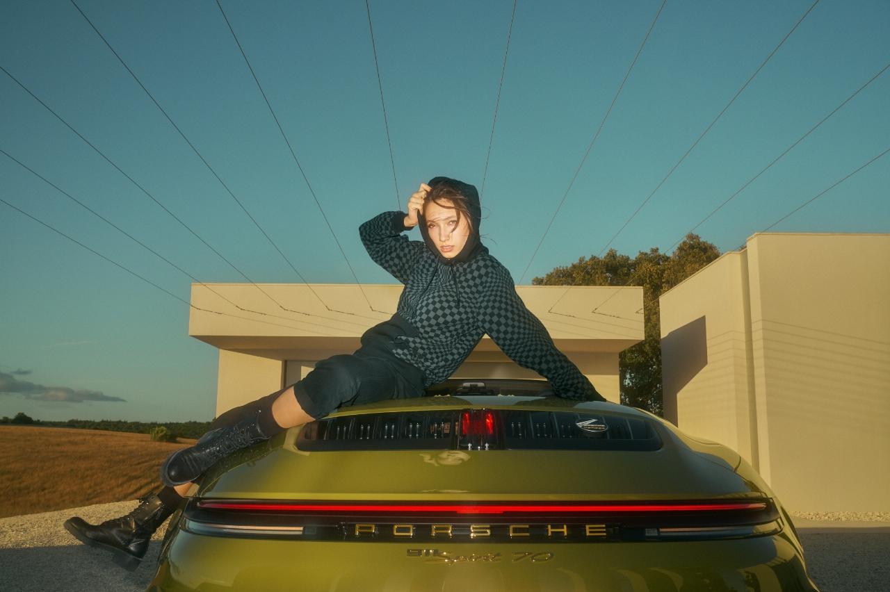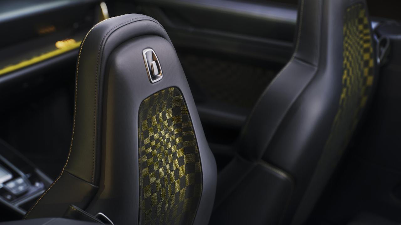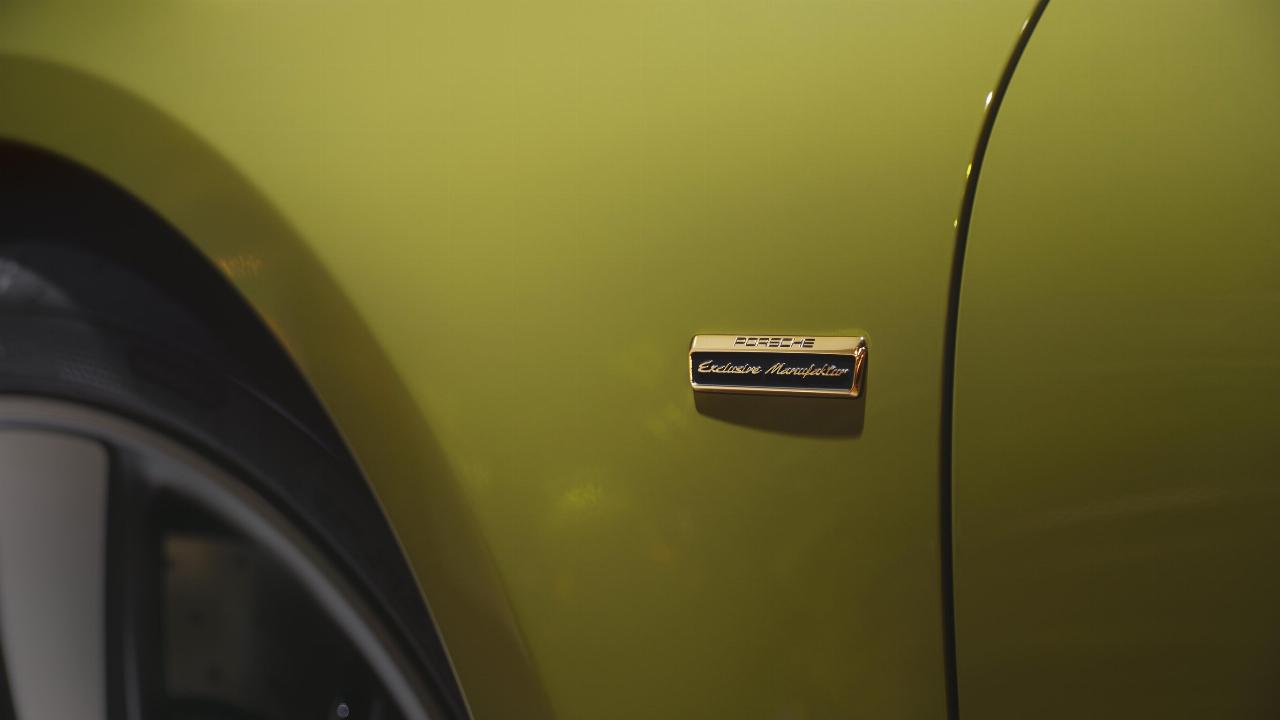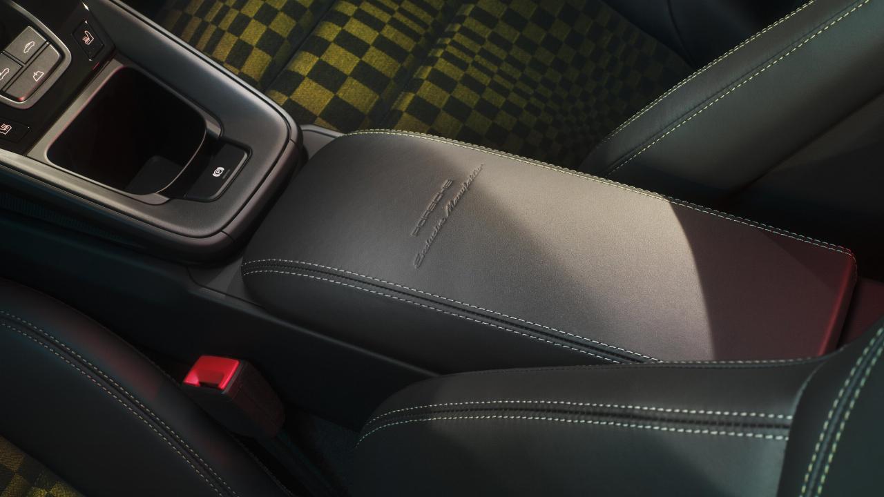 Weitere Details sind das Markenwappen auf der Fronthaube, das nahezu identisch mit dem historischen Emblem von 1963 ist, und die Heritage-Plakette auf dem Gitter des Heckdeckels, deren Design an die Plakette des Porsche 356 erinnert, die in den 1950er-Jahren nach Erreichen der 100.000-Kilometer-Marke vergeben wurde. Das karierte Stoffmuster im Interieur erinnert an eine Zielflagge. Das Kombiinstrument greift ebenfalls historische Elemente auf. Das hochauflösende Display im Format 12,65 Zoll besitzt weiße Zeiger und Skalenstriche in analoger Darstellung. Grüne Ziffern erinnern an den legendären Porsche 356.