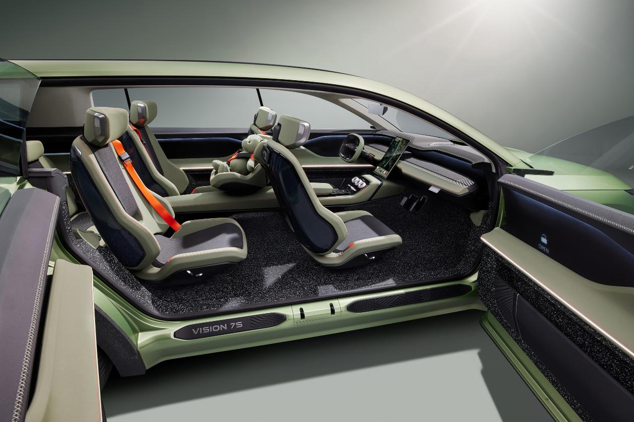 Seine Weltpremiere feierte der Vision 7S am 30. August in Prag. Die elektrische Konzeptstudie besitzt einen 89-kWh-Akku mit bis zu 200 kW Ladeleistung. Damit lässt sich eine maximale Reichweite von mehr als 600 Kilometern im WLTP-Zyklus erzielen. Das Fahrzeug zeigt auch die künftige Interieurkonzeption bei Skoda, die bei der Bedienung auf eine Mischung aus haptischen und virtuellen Elementen. Der Vision 7S verfügt über einen in die Mittelkonsole integrierten Kindersitz und bietet zwei unterschiedliche Innenraumkonfigurationen: fahren und relaxen. Je nach Modus verändern sich die Positionen von Lenkrad, Instrumententafel, Sitzen und Bildschirmen.