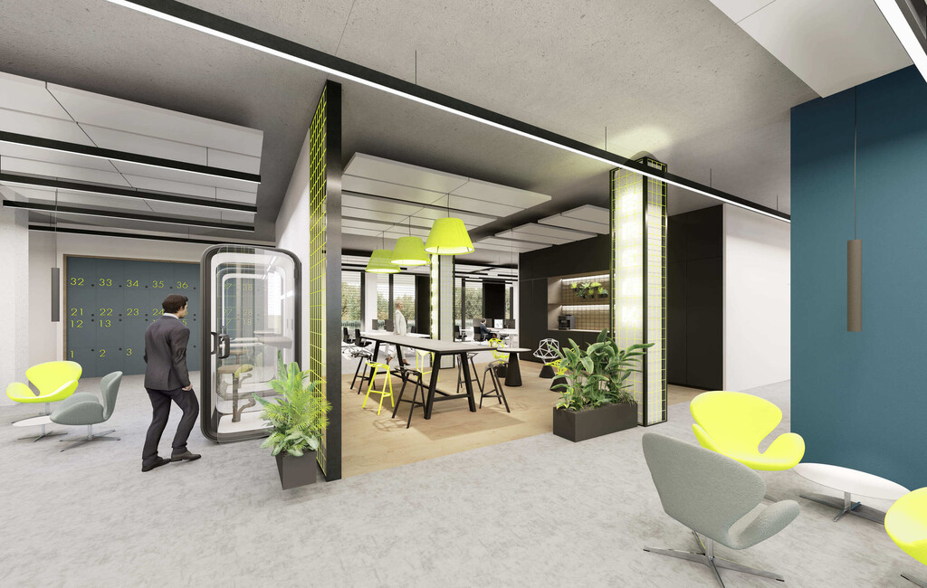 Für den gesamten Campus wird die DGNB-Zertifizierung in Gold angestrebt, mit der besonders nachhaltige Gebäude ausgezeichnet werden. Der Fokus liegt dabei auf Einsparung der CO2-Emissionen in der Konstruktion (Embodied Carbon) sowie nachhaltige Baustoffe, um eine gute Innenraumatmosphäre zu gewährleisten. Die Energieversorgung erfolgt durch eine Photovoltaikanlage, die in ein Gründach integriert ist. Dieses leistet nicht nur einen Beitrag zur Artenvielfalt, sondern sorgt zugleich für ein angenehmes Mikroklima und trägt zur Kühlung des Gebäudes bei, die parallel über eine bodennahe Geothermieanlage gewährleistet wird. (aum)