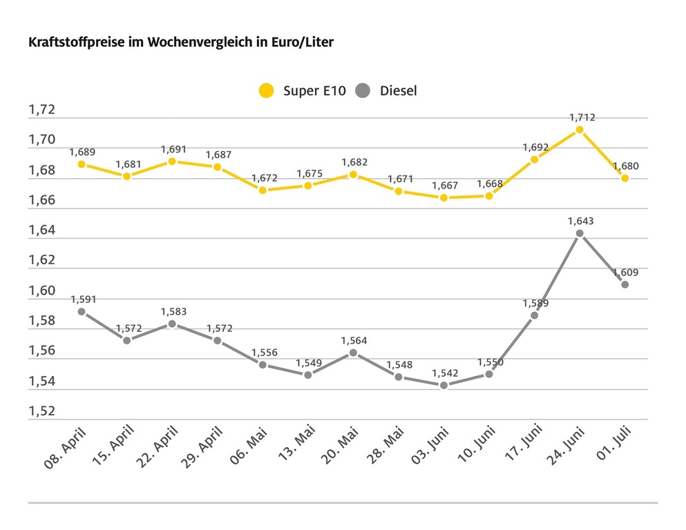 Zuletzt waren die Spritpreise nach Ansicht des ADAC um einige Cent zu hoch – ganz besonders Diesel hätte angesichts der spürbaren Entspannung beim Rohölpreis schneller und deutlicher sinken müssen. Zudem hat der Euro gegenüber dem US-Dollar erneut zugelegt – ein weiterer Faktor, der für sinkende Kraftstoffpreise sorgen sollte.