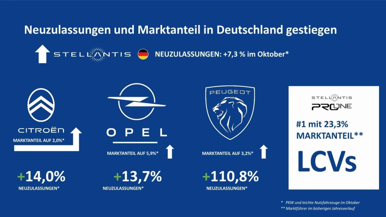 Im bisherigen Jahresverlauf steigerte Stellant seinen Absatz um fast neun Prozent auf 353.700 Fahrzeuge und erzielte einen Neuzulassungsanteil von 13,7 Prozent. Bei den Lieferwagen und Transportern blieb das Unternehmen dabei die Nummer eins und baute seinen Marktanteil in den vergangenen zehn Monaten von 21 Prozent auf 23,3 Prozent aus. (aum)