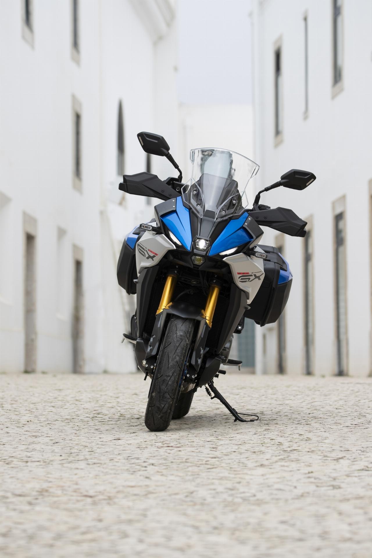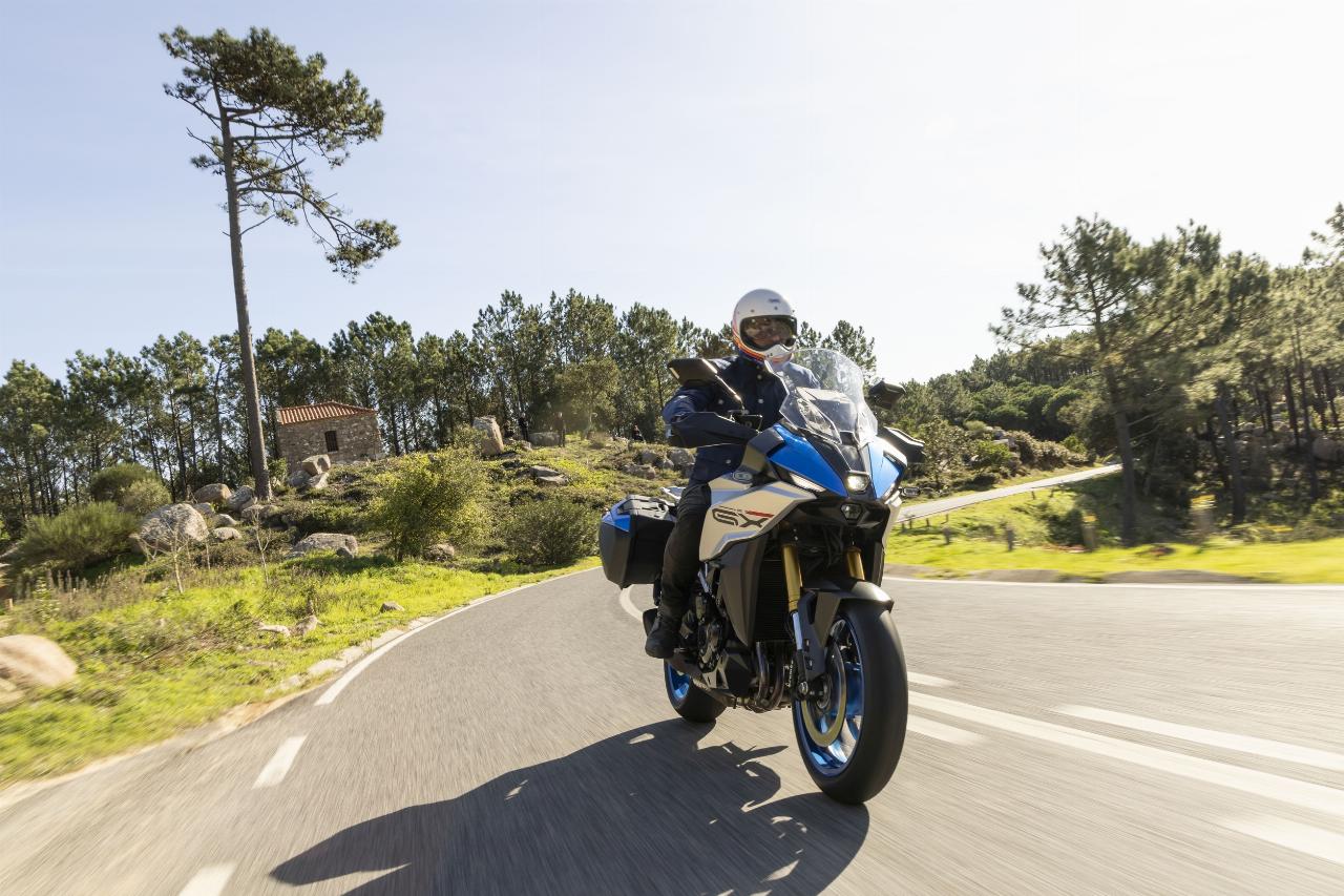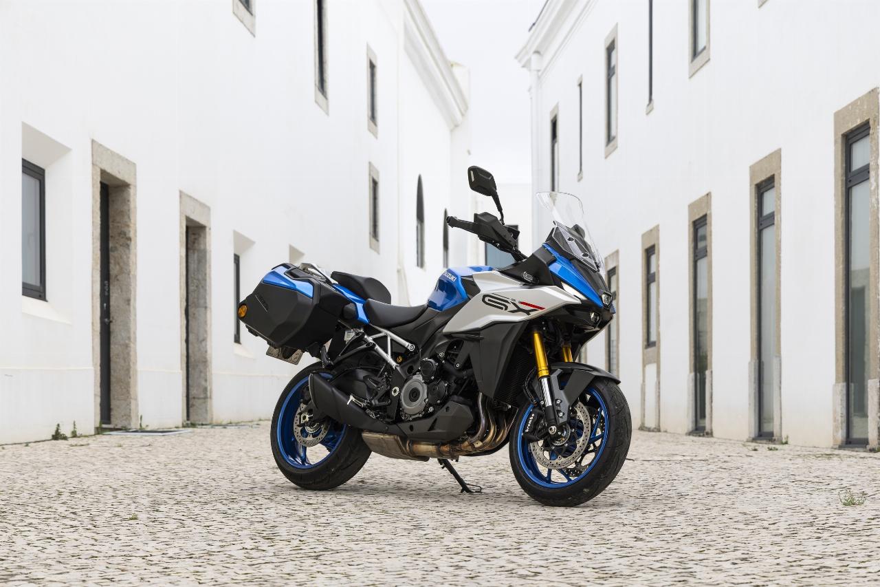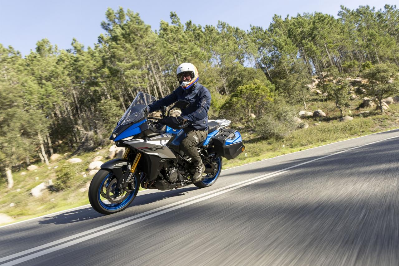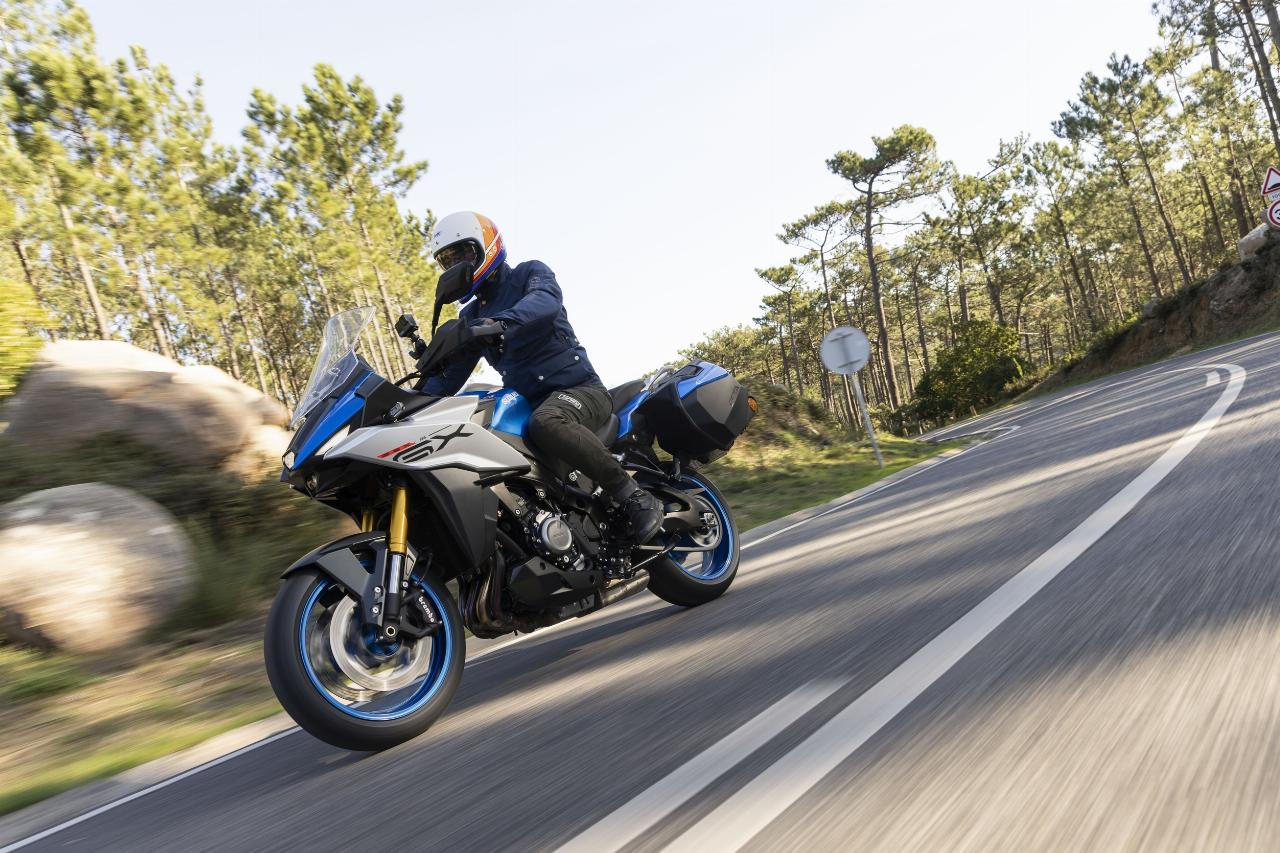 Als erste Suzuki verfügt die GX über eine Sechs-Achsen-Sensormesseinheit aus dem Hause Bosch sowie ein semi-aktives Fahrwerk. Handling, Federungskomfort und Stabilität auch bei hohem Tempo überzeugen auf ganzer Linie. Die 232 Kilogramm Gewicht spürt man nur beim Rangieren. Die gelungene Abstimmung zwischen Vorderrad- und Hinterradbremse sorgt für zielgenaues Ankern.