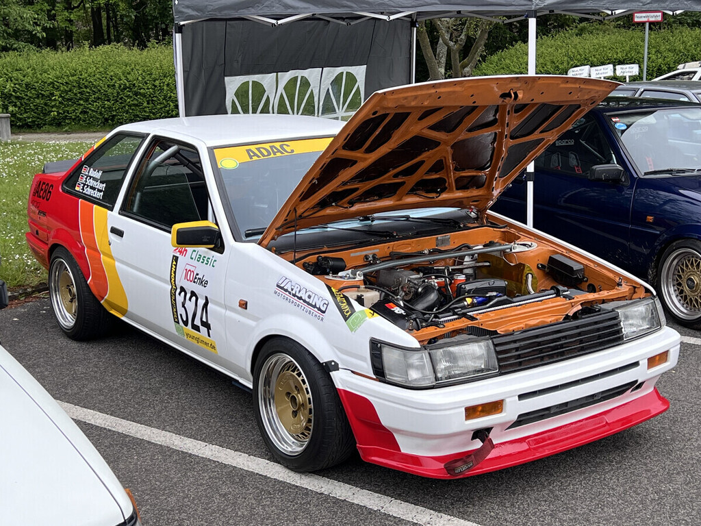 Wer an Hintergrundinfos zu den insgesamt 75 ausgestellten Fahrzeugen in der Toyota Collection interessiert ist, kann das Angebot der kostenfreien Guided-Tours durch die Ausstellung nutzen. Ein Experte erzählt dabei Fun Facts und auch manche Anekdote zu den Fahrzeugen. Direkt vor dem Eingang der Ausstellungshalle der Toyota Collection gibt es das gewohnte spontane Treffen der Toyota-Community mit seltenen und liebevoll gepflegten Fahrzeugen. Darunter diesmal auch manches Sportgerät, das von Rundstrecke oder Rallye erzählt.