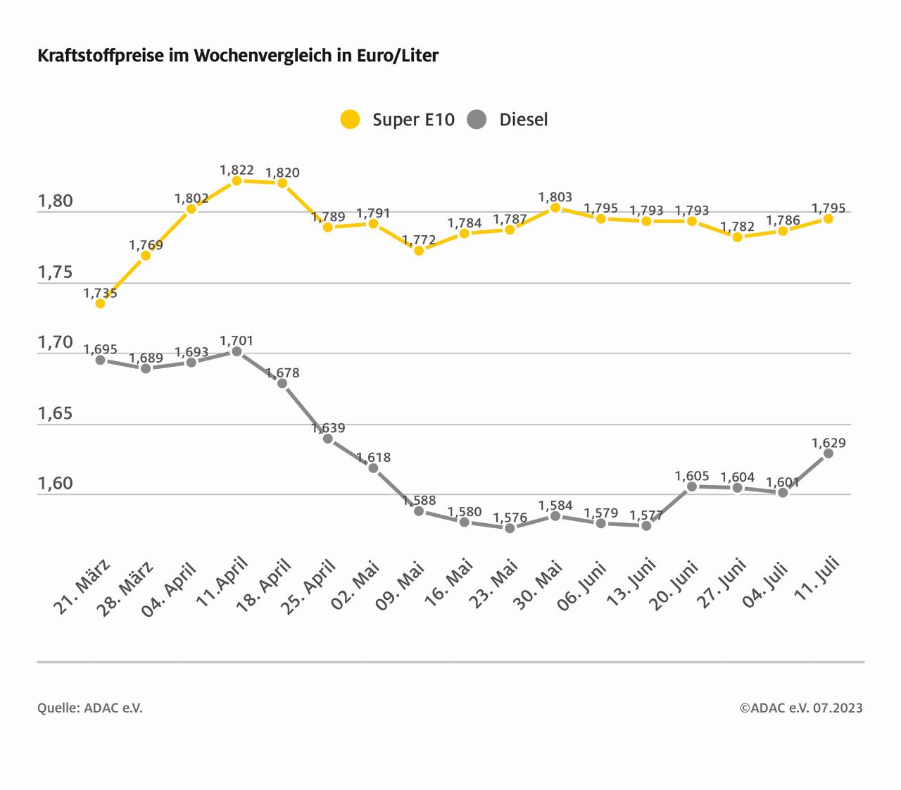 Ursache für die aktuelle Verteuerung sind in erster Linie die höheren Rohölnotierungen. So kletterte der Preis für ein Barrel (159 Liter) Rohöl der Sorte Brent binnen Wochenfrist um über drei US-Dollar. Der Euro zeigt sich im Vergleich zur Vorwoche etwas fester bei aktuell 1,10 US-Dollar. Dass speziell der Dieselpreis im Wochenvergleich deutlich gestiegen ist, könnte laut ADAC auch an der aktuell höheren Heizölnachfrage liegen. Diese setzt normalerweise erst im Herbst ein. Aufgrund der unklaren Preissituation im vergangenen Jahr holen aber viele Verbraucher ihren ursprünglich für 2022 geplanten Kauf von Heizöl offenbar erst in diesem Sommer nach, vermutet der Automobilclub.