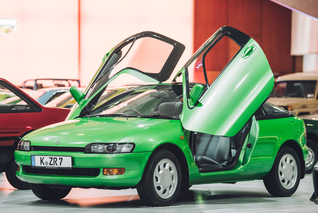 Ohne Absperrung das spacige Cockpit eines brillant-grün leuchtenden Toyota Sera kennenlernen, auch diese Gelegenheit gibt das Public Opening. Das an einen kleinen Raumkreuzer aus einer anderen Galaxie erinnernde Fastback-Coupé trägt die Zukunft im Namen, denn Sera leitet sich von der Futur-Form des französischen Verbs être (sein) ab. Überraschte doch dieser unter Chefingenieur Kaneko Mikio und Karosseriedesigner Yao Hiroyuki aus dem visionären Konzeptfahrzeug Toyota AXV-II entwickelte 2+2-Sitzer im Jahr 1990 mit mehreren zukunftsweisenden Technologien. Allen voran die Schmetterlingstüren, die oberhalb der Frontscheibe und an der A-Säule befestigt waren und bei Öffnung nur 43 Zentimeter Platzbedarf zur Seite hatten, vorteilhaft auf engen Parkplätzen. Sogar Gordon Murray, Chefdesigner des legendären McLaren F1, ließ sich von den Schmetterlingstüren des Toyota inspirieren, wie er einst erklärte. Obwohl der Sera ausschließlich in Japan verkauft wurde, fanden einige Exemplare des 2+2-Sitzers den Weg nach Europa. Für die Toyota Collection Anlass, das erste Sera Meeting zu veranstalten: Die bunt lackierten, 1,27 Meter flachen JDM-Flundern versprechen unvergessliche Erlebnisse am ersten Oktoberwochenende.