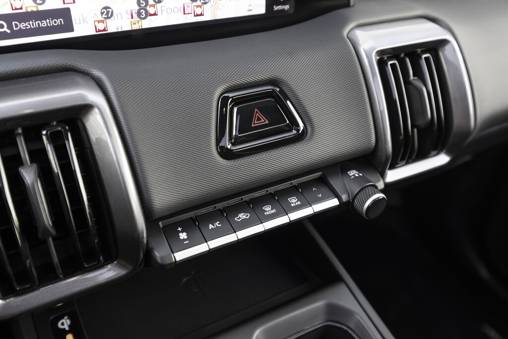 Der Innenraum ist in Schwarz und Dunkelgrau gehalten, mit Stoffbezügen oder einer Kombination aus Stoff und hochwertigem Kunstleder für die höhere Ausstattungslinie. Für eine stimmungsvolle Atmosphäre sorgt eine Ambientebeleuchtung, die in zwölf Farben und sieben Helligkeitsstufen eingestellt werden kann und Türverkleidungen sowie die Ablage in der Konsole hervorhebt.