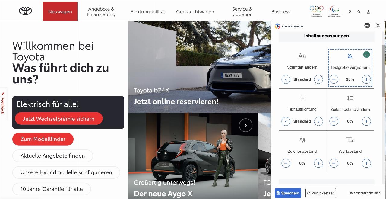 Toyota-Webseite passt sich Sehbedürfnissen an