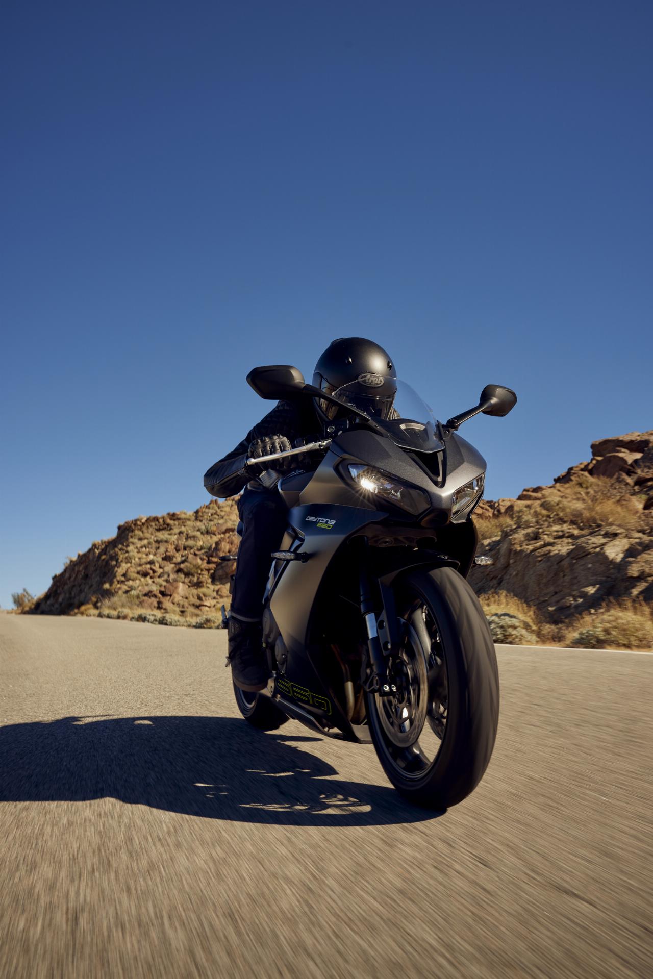 Die Daytona 660 verfügt unter anderem über drei Fahrmodi und ein Notbrems-Warnlicht sowie eine abschaltbare Traktionskontrolle. Die Standardsitzhöhe beträgt 810 Millimeter. Erhältlich ist auch ein Umrüstkit für A2-Führerscheinbesitzer.
