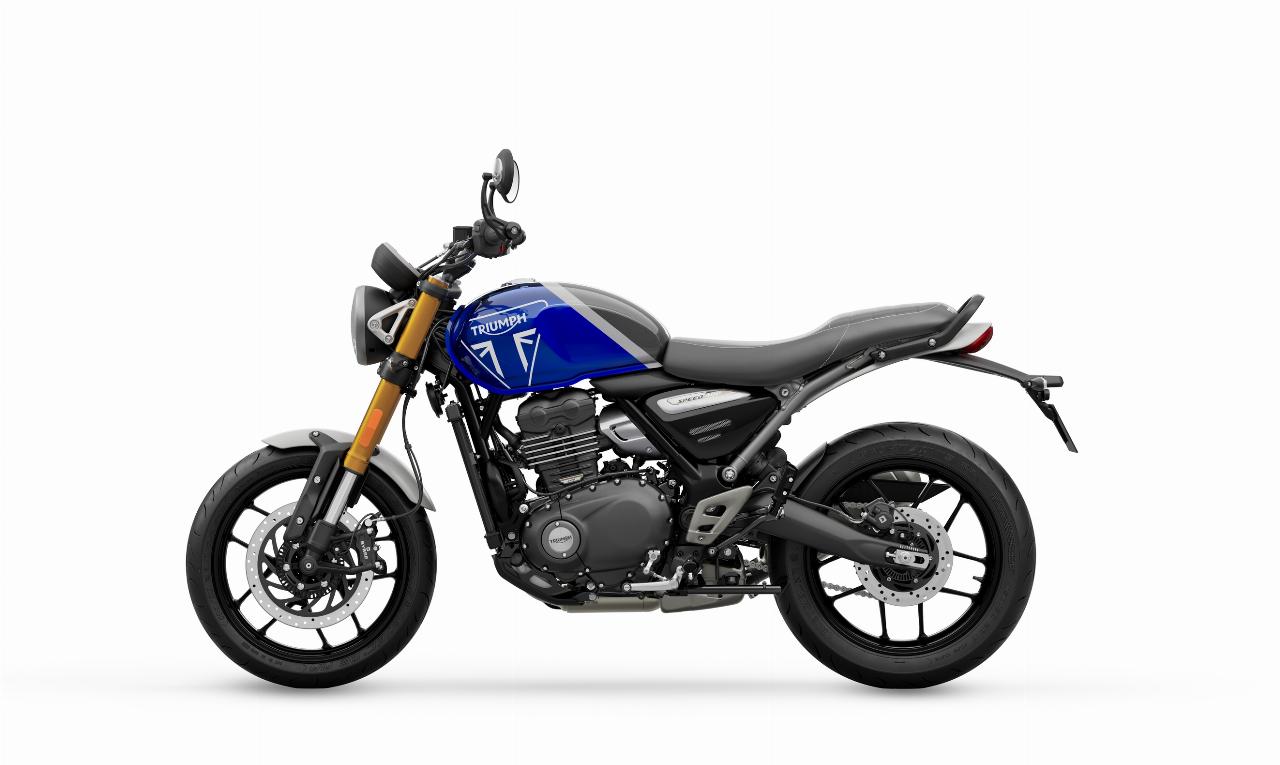 Die Triumph Speed 400 und Scrambler 400 X haben eine 43-Millimeter-Upside-down-Gabel, Voll-LED-Beleuchung inklusive Tagfahrlicht, eine USB-Ladebuchse und eine abschaltbare Traktionskontrolle. Der Tacho arbeitet analog, der Rest der Informationen wird per LCD-Display angezeigt. Bei der Scrambler, die nicht nur über eine höhere Sitzposition und ein größeres 19-Zoll-Vorderrad, sondern auch über einen längeren Radstand verfügt, kann das ABS für Geländefahrten deaktiviert werden. Sie zeichnet sich außerdem durch ein Doppelendrohr und grobstolligere Bereifung aus.