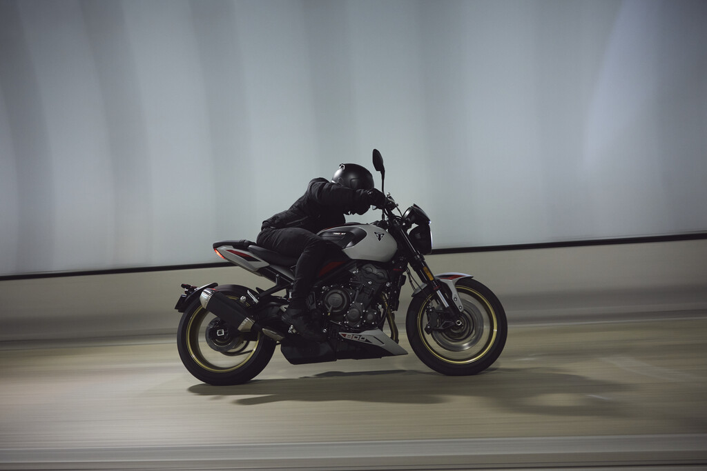 Der Tank fällt mit 14 Litern kleiner aus als bei der Tiger Sport (18,6 Liter). Das Gewicht beträgt 198 Kilogramm, das sind 16 Kilo weniger. Und die Sitzhöhe der Trident sinkt von 83,5 auf 81 Zentimeter.