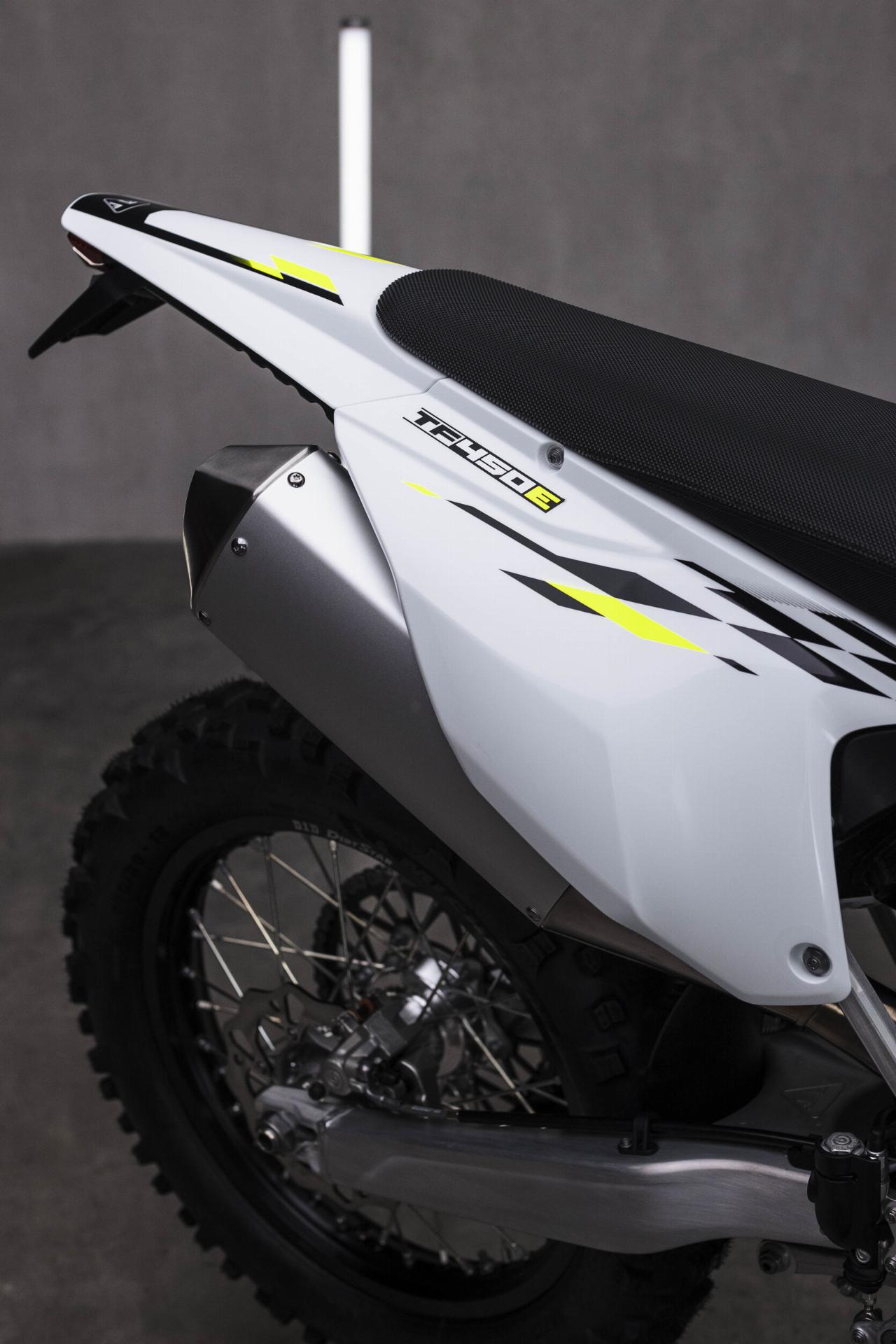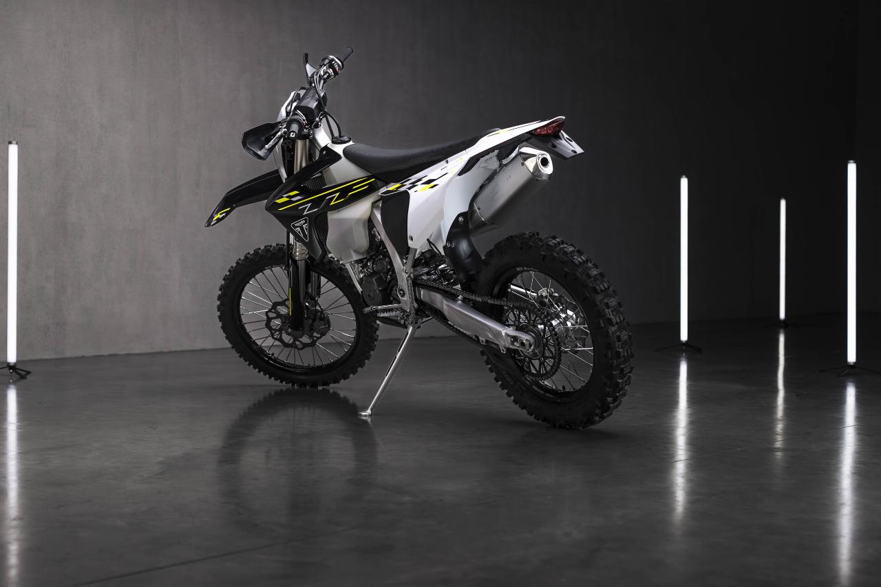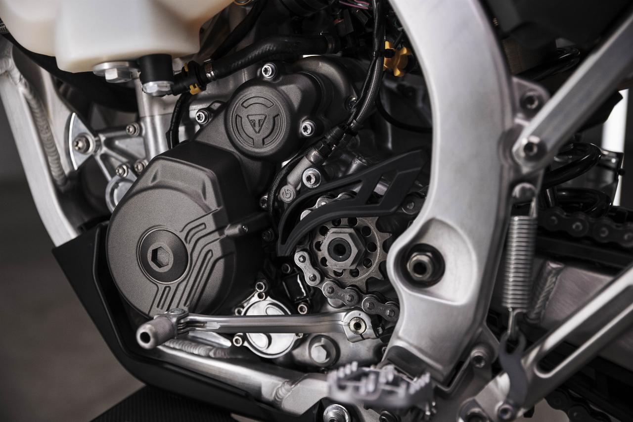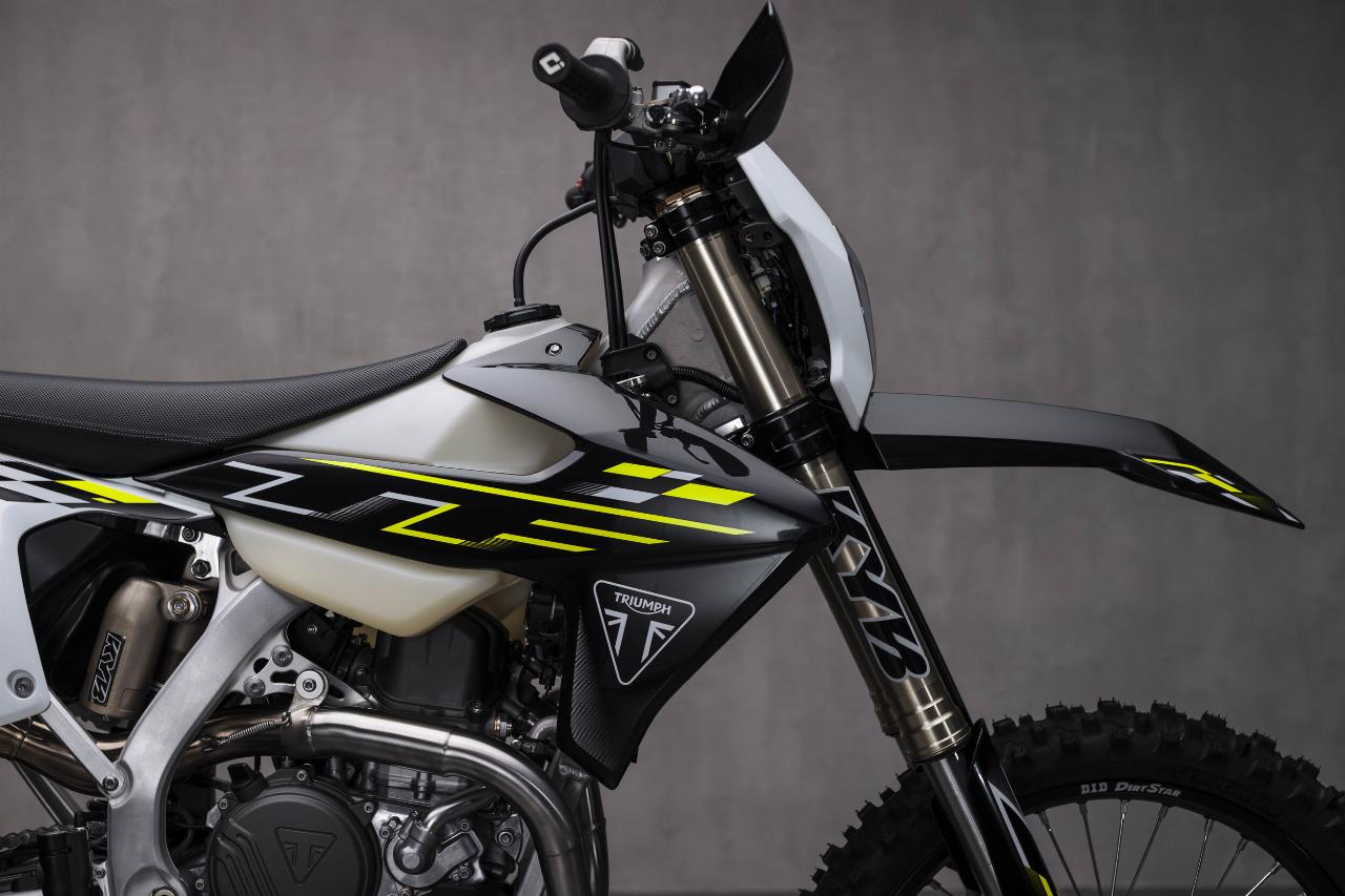 Triumph erweitert sein Geländesportangebot um die neuen Enduromodelle TF 450-E und TF 250-E. Entwickelt wurden sie in enger Zusammenarbeit mit den mehrmaligen Weltmeistern Iván Cervantes und Paul Edmondson. Der Motor, der eine höhere Schwungmasse als in den Motocrossmodellen entwickelt, steckt in einem sehr leichten Aluminium-Chassis auf Basis eines neuen Zentralrohr-Rahmens mit zwei Unterzügen. Während für die TF 450-E noch keine Leistungsangaben gemacht werden, darf die 250er mit 42 PS (31 kW) und 28 Newtonmetern Drehmoment als leistungsstärkste Vertreterin ihrer Klasse gelten. Der Einzylinder dreht bis 12.800 Umdrehungen in der Minute.