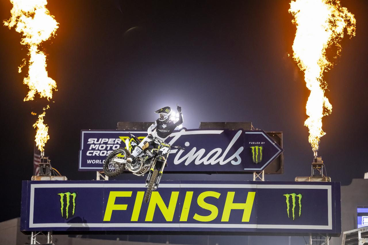 kehrte im Memorial Coliseum an den Ort zurück, an dem er 1992 seine sechste und letzte Meisterschaft gewonnen hat. Derzeit ist er Manager der Triumph Adventure Experience in den USA. Das zweite Motorrad war eine einmalige Special Edition mit nicht-serienmäßigen Komponenten, die von Ricky Carmichael designt und gefahren wurde. Carmichael ist Markenbotschafter und für viele Fans auch der GOAT (Greatest Of All Times) des Motocross-Sports.