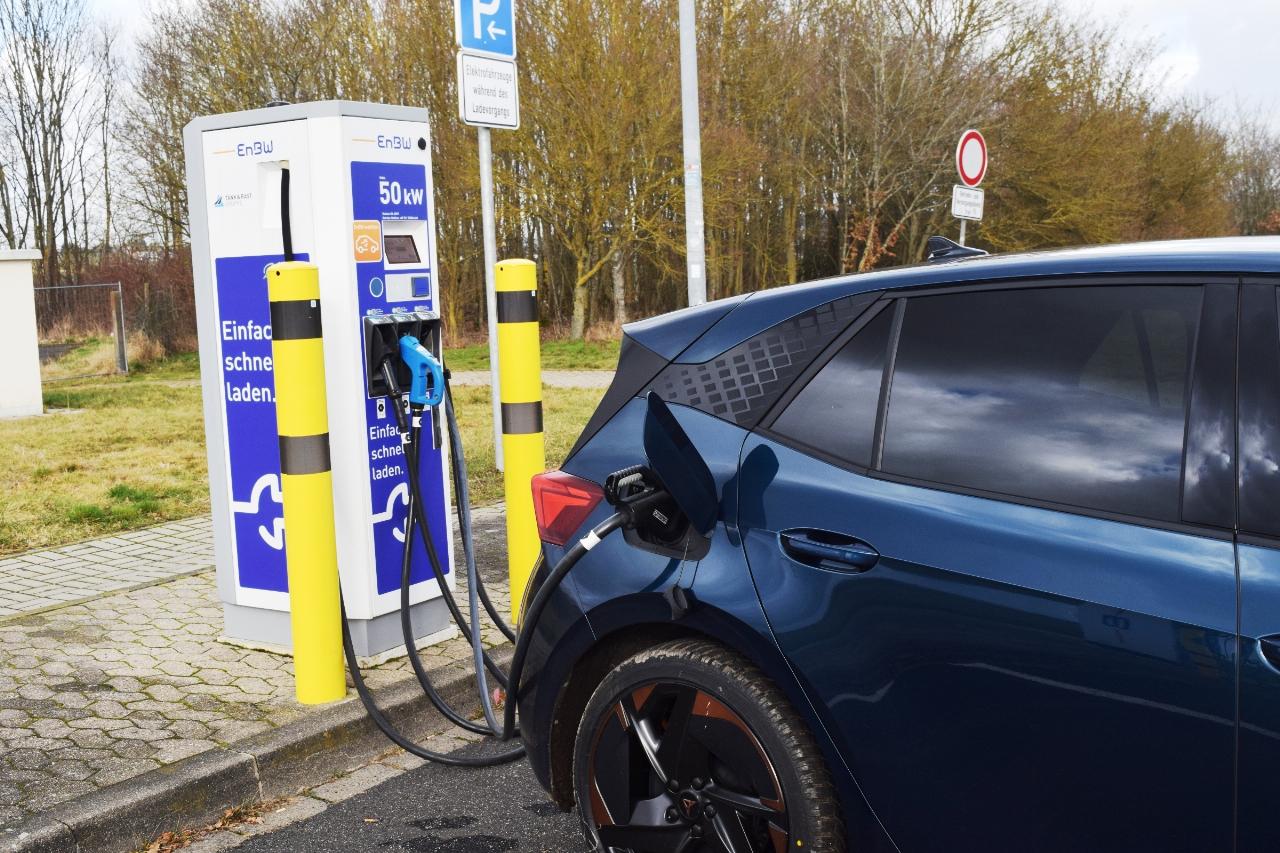 Im Gegensatz dazu pustet der Cupra Born kein klimaschädliches Gas in die Luft. Und wenn es stimmt, was auf den EnWB-Schnelladesäulen vermerkt ist („100 Prozent Strom aus nachhaltiger Produktion“), dann ist auch sein Treibstoff umweltgerecht.