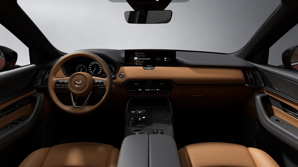 Eines der optischen Highlights des neuen Modelljahres ist die hellbraune Nappaleder-Ausstattung für die Topausstattungen Homura und Homura Plus, inklusive zweifarbigem Lederlenkrad und einem mit Veloursledernachbildung überzogenen Armaturenträger. Darüber hinaus werden die Ausstattungen der beiden Crossover-Modelle angeglichen. Nach dem CX-80 hält nun auch im CX-60 die Navigation mit kombinierter Offline- und Online-Routenführung inklusive Echtzeit-Verkehrsinformationen sowie die Alexa-Sprachsteuerung Einzug.