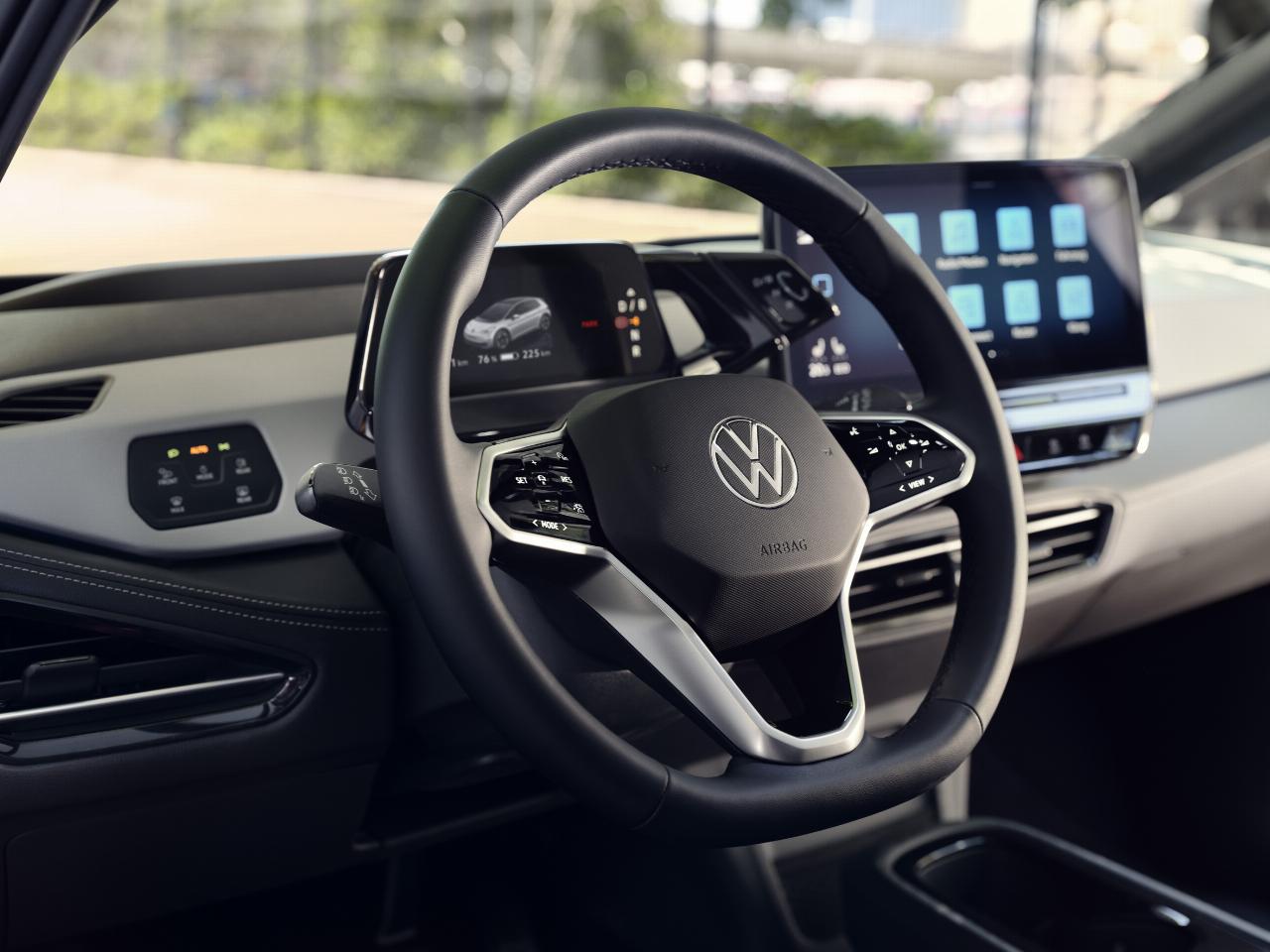 Das Interieur erfüllt nun die Erwartungen der früher recht verwöhnten Volkswagen-Kundschaft. Während die im ID 3 verwendeten Kunststoffqualitäten von Anfang an auf Kritik gestoßen waren, unterstreichen weichere Materialien an der Oberseite von Türen und Armaturentafel, Kunstleder-Applikationen mit Ziernähten und silberne Streifen an den Luftausströmern die Erwartungen an ein Premium-Produkt der 40.000-Euro-Klasse. Tatsächlich übertreffen die Qualitäten sogar den aktuellen Stand in den größeren und teureren Modellen ID 4 und ID 5.