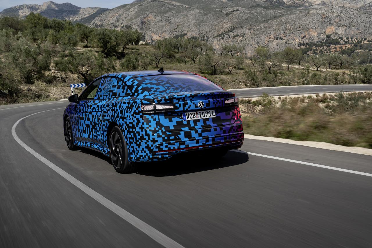 Der ID 7 wurde als Reiselimousine entwickelt und besitzt die weiterentwickelte adaptive Fahrwerksregelung DCC. Der Mensch hinter dem Lenkrad kann die Fahrprofile „Eco“, „Comfort“ und „Sport“ oder einen Individualmodus wählen. Bei einer ersten kurzen Ausfahrt mit dem Prototyp in Andalusien zeigte VWs Siebener seine Komfort-Eigenschaften. Vor allem die Einstellung „Comfort“ hält, was sie verspricht. Gleichzeitig kann die Limousine auch durchaus agil agieren, wobei der Fahrdynamikmanager die Stabilität ins Spiel bringt. Gleichzeitig ist der ID 7 trotz seiner Abmessungen erstaunlich wendig.