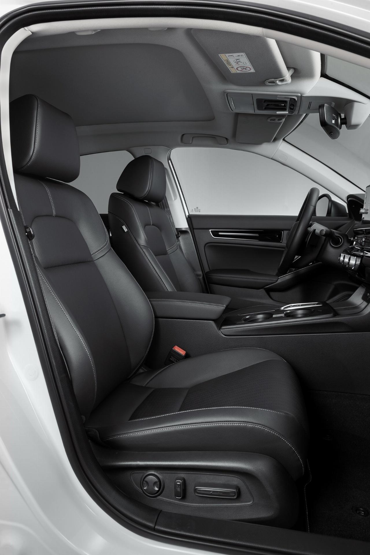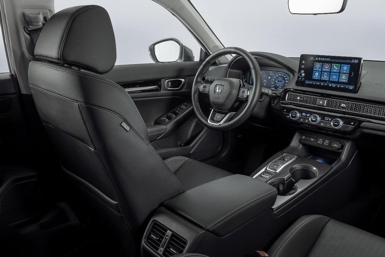 Das Cockpit betont die Horizontale. Ein wabenförmiges Lüftungsgitter zieht sich über die gesamt Breite der Armaturentafel, die Instrumente werden mit einem 10,2 Zoll großen Farbdisplay dargestellt, das allerdings erst ab der Ausstattungslinie Advance zum Serienumfang gehört. Am zentralen Mittelmonitor, der nun neun Zoll misst und weiter oben positioniert wurde, lassen sich alle Funktionen des Infotainmentsystem intuitiv steuern, verspricht Honda. Bei der statischen Präsentation ließ sich das allerdings nicht überprüfen. Smartphones mit Android Auto und kabellosem Apple Carplay lassen sich wie üblich in die Anlage einbinden. In der Topausstattung sorgt ein Bose-Soundsystem mit zwölf Lautsprechern für den guten Ton. In den weniger umfangreichen Ausstattungen muss sich die Mannschaft mit acht Klangquellen begnügen.