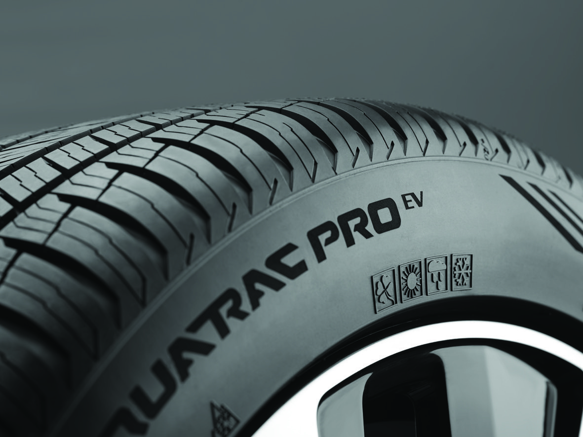 Trotzdem ist er in der Lage, das erhöhte Drehmoment und das höhere Fahrzeuggewicht moderner Elektrofahrzeuge zu bewältigen. Der Quatrac Pro EV verfügt über ein asymmetrisches Laufflächenprofil und steifere Profilblöcke. Wert legten die Entwickler auf gute Eigenschaften insbesondere bei Schnee und Eis. Die Lamellen sind tiefer als für einen Ganzjahresreifen üblich.