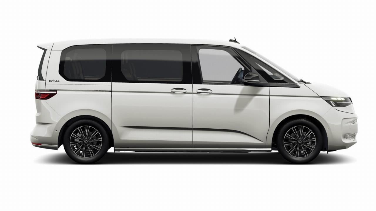 Der Multivan Goal verfügt im Vergleich zum Multivan Life zusätzlich über das Licht- und das Parkpaket sowie das Assistenzpaket „Advanced“ mit automatischer Distanzregelung, Car-2-X-Funktion, Travel Assist und Emergency Assist sowie den Spurwechsel- und Ausparkassistenten und den Ausstiegswarner. Ebenfalls mit dabei sind unter anderem Drei-Zonen-Klimatisierung, beheizbares Lenkrad, das Digital Cockpit Pro und schwarze 17-Zoll-Leichtmetallräder sowie Alu-Pedalerie.