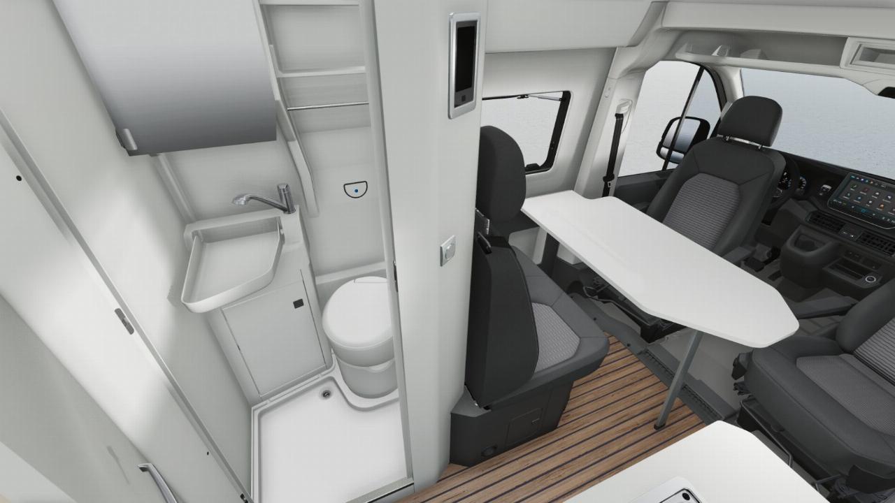 Außerdem gibt ein im Rahmen der Moellpflege neues Bedienteil im Wohnraum, um Geräte wie Heizung, optionale Sat-Anlage usw. im Wohnraum zu steuern und Informationen über die Füllstände der Wassertanks und der Bordbatterien zu erhalten. Ein Großteil der Funktionen sind auch über die neue California-App oder über das Infotainmentsystem steuerbar. Mit an Bord ist jetzt auch Ida, der digitale Sprachassistent mit Chat-GPT-Integration.