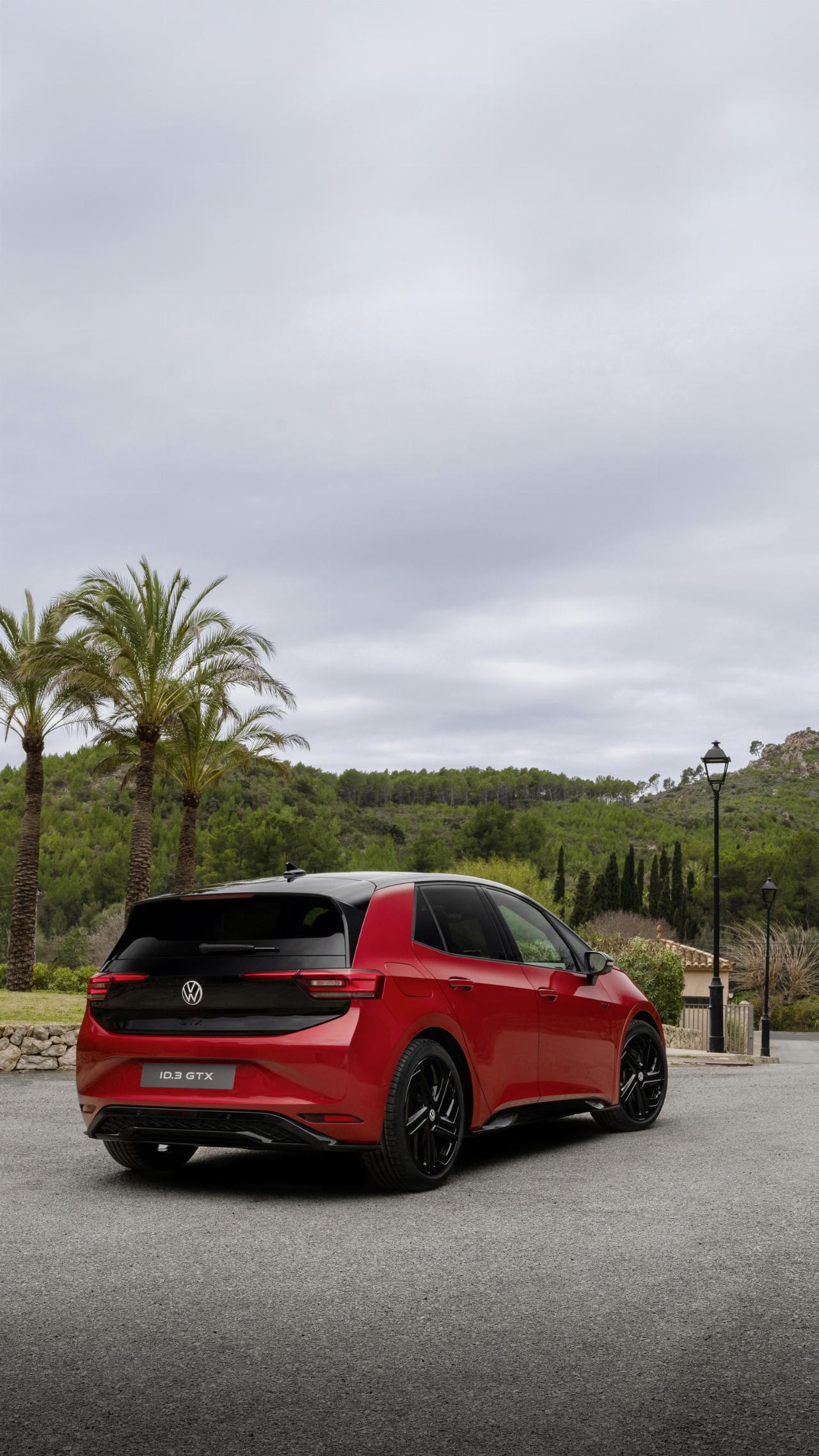 Der VW ID 3 GTX mit spezifischen Karosseriedetails und Sportsitzen entwickelt ein maximales Drehmoment von 545 Newtonmetern und beschleunigt in 5,9 Sekunden auf 100 km/h. Die Höchstgeschwindigkeit beträgt 180 km/h, die Normreichweite 604 Kilometer. Geladen werden kann mit bis zu 185 kW.