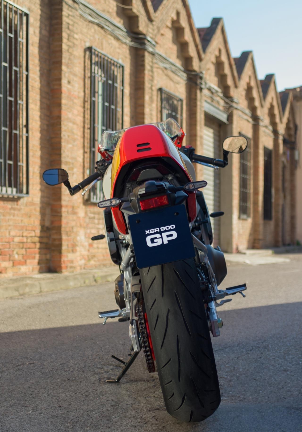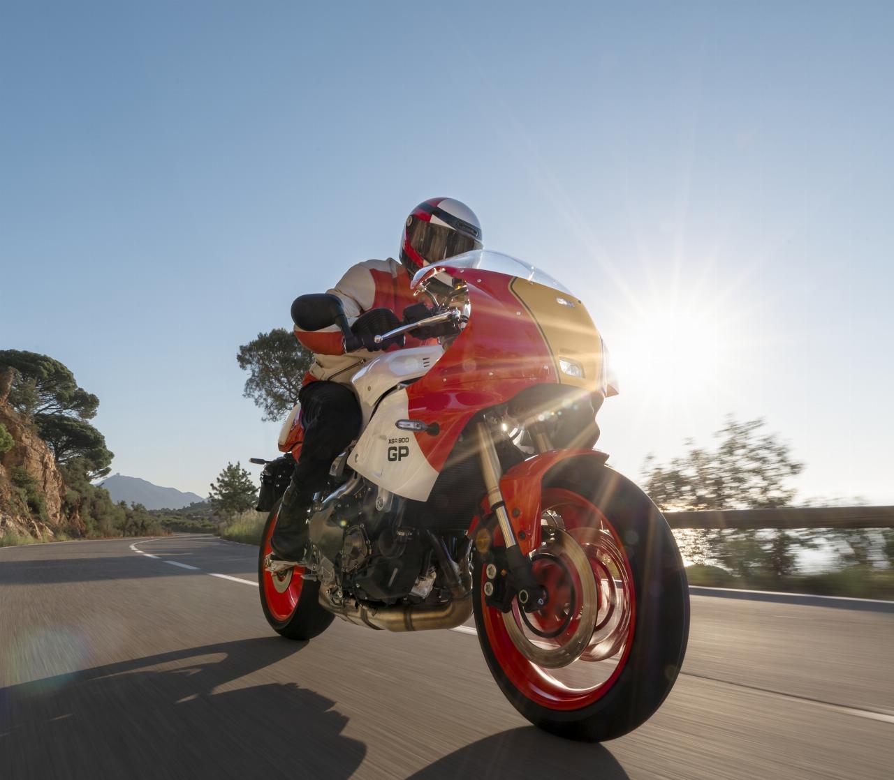 Um den Racing-Look beizubehalten, wurde der runde LED-Scheinwerfer der XSR durch ein kompaktes Linsenmodul ersetzt, das hinter der Verkelidung sitzt. Die Rohrstruktur, die die Frontverkleidung mit dem Rahmen verbindet, und die geraden Halterungen, die das Cockpit stützen, schaffen eine Fahrerperspektive, die ebenfalls von jener Zeit inspiriert sind. Über den Soziussitz findet sich eine farblich passende Abdeckung als Sitzhöcker, in dem sich auch das Rücklicht „versteckt“.