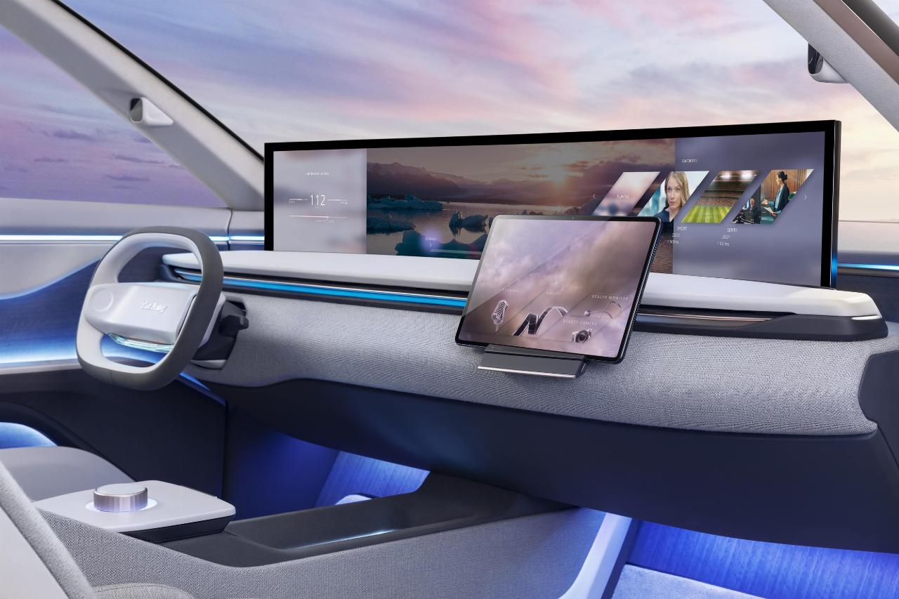 Neben vieler Fahrzeugfunktionen ermöglicht das Tablet den Insassen zusätzliche Personalisierungsoptionen. Zudem lässt es sich auch vollständig von der Mittelkonsole abdocken kann an die mitreisenden Gäste weitergereicht werden.