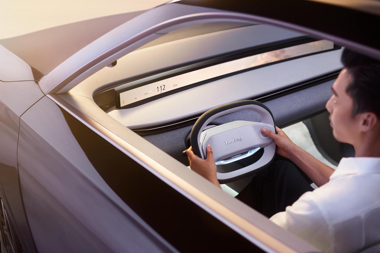 Schon der Einstieg in das Konzeptfahrzeug geschieht eindrucksvoll: Die gegenläufig angeschlagenen Türen öffnen unter leisem Surren elektrisch, gleichzeitig schwenken die Einzelsitze automatisch nach außen, um den Passagieren einen höchst entspannten Zugang in den Innenraum zu gewähren. Während sich der Autor in den kommoden Beifahrersessel fallen lässt, hat neben ihm bereits schon Andreas Deubzer die Fahrerposition eingenommen. Deubzer ist globaler Designchef bei Yanfeng und erklärt die Highlights der Forschungsstudie.