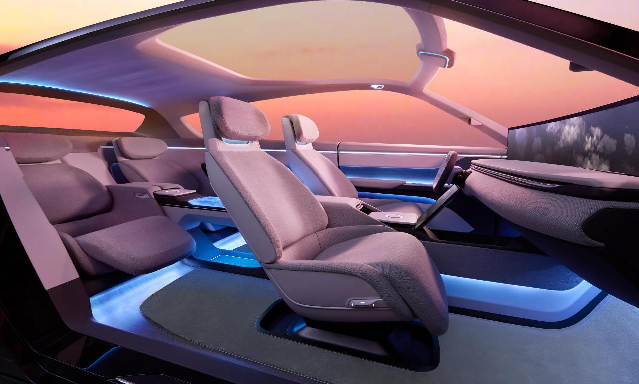 Insgesamt hinterlässt die Studie nun einen sehr luxuriösen Eindruck. Das Wohlfühlambiente lässt sich über den Immersive-Modus aber noch weiter steigern. Ist er aktiviert, neigen sich die Sitzlehnen in eine Relax-Position und massieren einem wirkungsvoll den Rücken. Die üppig dimensionierte LED-Beleuchtung wirkt beruhigend. Zusätzlich lassen sich im Innenraum wohlriechende Düfte verteilen, die den ohnehin schon angenehmen Komfort erhöhen.