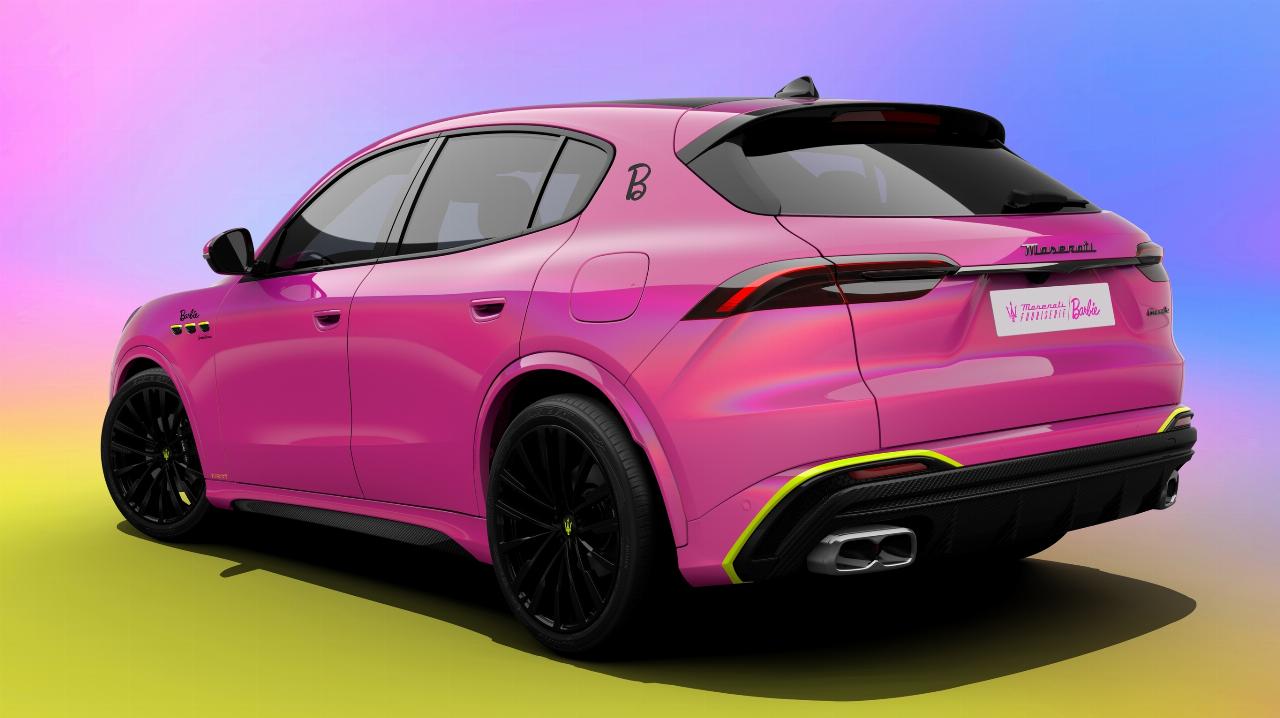 Technische Basis ist der 530 PS (390 kW) starke Grecale Trofeo. Feine Linien in Säuregelb bilden einen Kontrast zur rosafarbenen Karosserie und sind von der Motorsporttradition von Maserati inspiriert. Das mit dem Barbie-Logo geschmückte Exterieur ist mit einem schillernden Decklack versiegelt, der an einem sonnigen Tag einen Regenbogeneffekt erzeugt. Das Interieur ist in Schwarz gehalten, wobei die Vollledersitze, Teppiche und Türen mit rosa Nähten verziert sind, die Kopfstützen sind mit einem „B“-Emblem versehen. Interieur-Applikationen in Rosa greifen ebenfalls den Modestil „Barbiecore“ auf. (aum)
