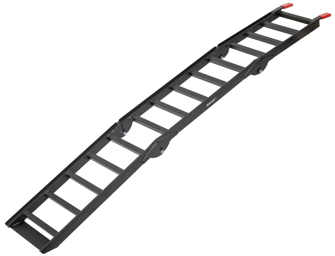 Louis nimmt exklusiv zwei Auffahrrampen von Rothewald ins Programm auf, um Motorräder mühelos und sicher in den Transporter oder auf den Anhänger zu verladen. Die dreiteilige Ausführung aus Aluminium ist für Traglasten bis 240 Kilogramm ausgelegt und wiegt selbst nur 5,2 Kilogramm. Sie bietet eine Länge von zwei Metern und eine maximale Auffahrhöhe von 90 Zentimetern. Sie kostet 99,99 Euro und misst im zusammengeklappten Zustand 72 mal 31 mal 20 Zentimeter. Für schwerere Maschinen mit einer Tragkraft von 340 Kilo gibt es noch eine zweiteilige Ausführung von gleicher Länge und Auffahrhöhe. Auch sie ist aus Aluminium und wiegt 6,2 Kilogramm. Zusammengeklappt betragen die Maße 102 x 30 x 13 Zentimeter. Der Preis liegt bei 119,99 Euro. (aum)