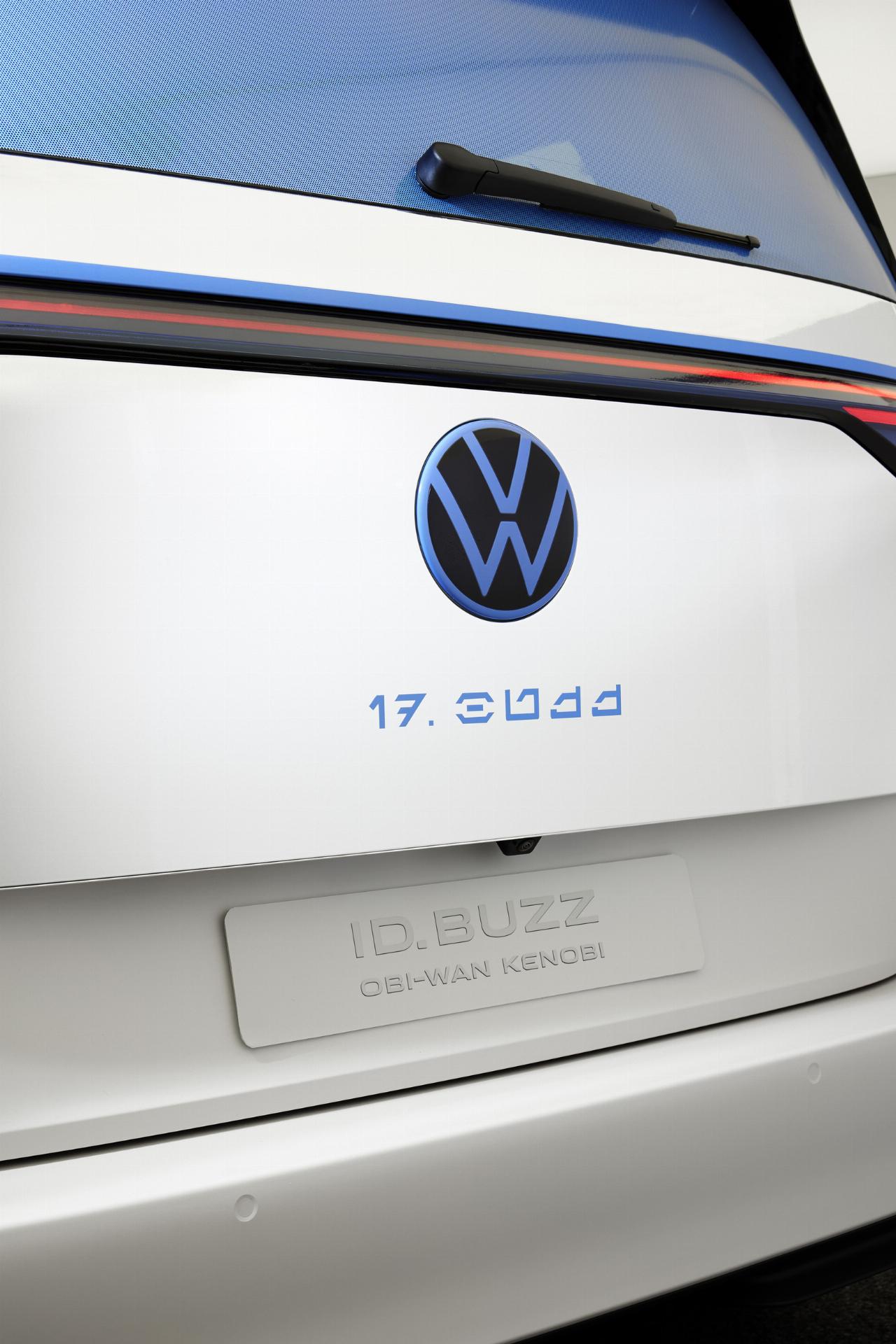 Bei der Folierung der beiden Elektro-Bullis ließen sich die Designer speziell von den beiden Gegenfiguren Obi-Wan Kenobi und Darth Vader inspirieren. Für das Projekt arbeiteten Gestalter der Produktionsfirma Lucasfilm und VW erstmals miteinander. Die Heck-Schriftzüge der beiden ID Buzz sind in der klassischen Schrift der Weltraum-Serie verfasst. Weitere von Star Wars inspirierte Schriftzüge befinden sich auf den Kotflügeln.