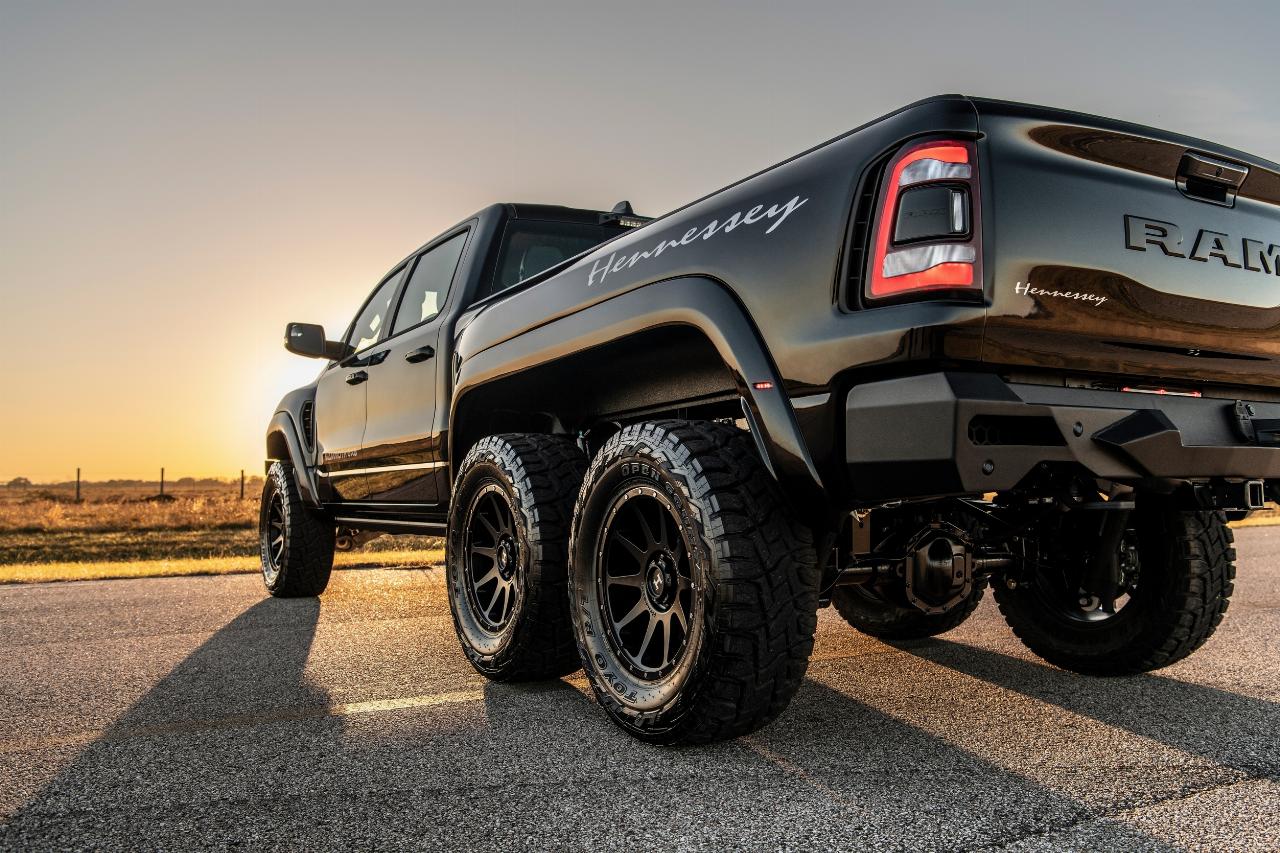 Hennessey aus Texas hat sein bislang mächtigstes Fahrzeug entwickelt. Der Pick-up Mammoth 1000 6x6 TRX ist nicht nur 7,19 Meter lang und hat drei Achsen, sondern er verfügt auch über eine Leistung von 1012 PS und 1314 Newtonmeter Drehmoment. Basis für den High-Performance-Pritschenwagen ist der Dodge Ram TRX, dessen 6,2-Liter-V8-Hellcat-Motor im Hennessey dank Kompressor über 300 zusätzliche PS mobilisiert. Der Preis für den Mammoth beträgt knapp 450.000 US-Dollar (rund 416.000 Euro). (aum)