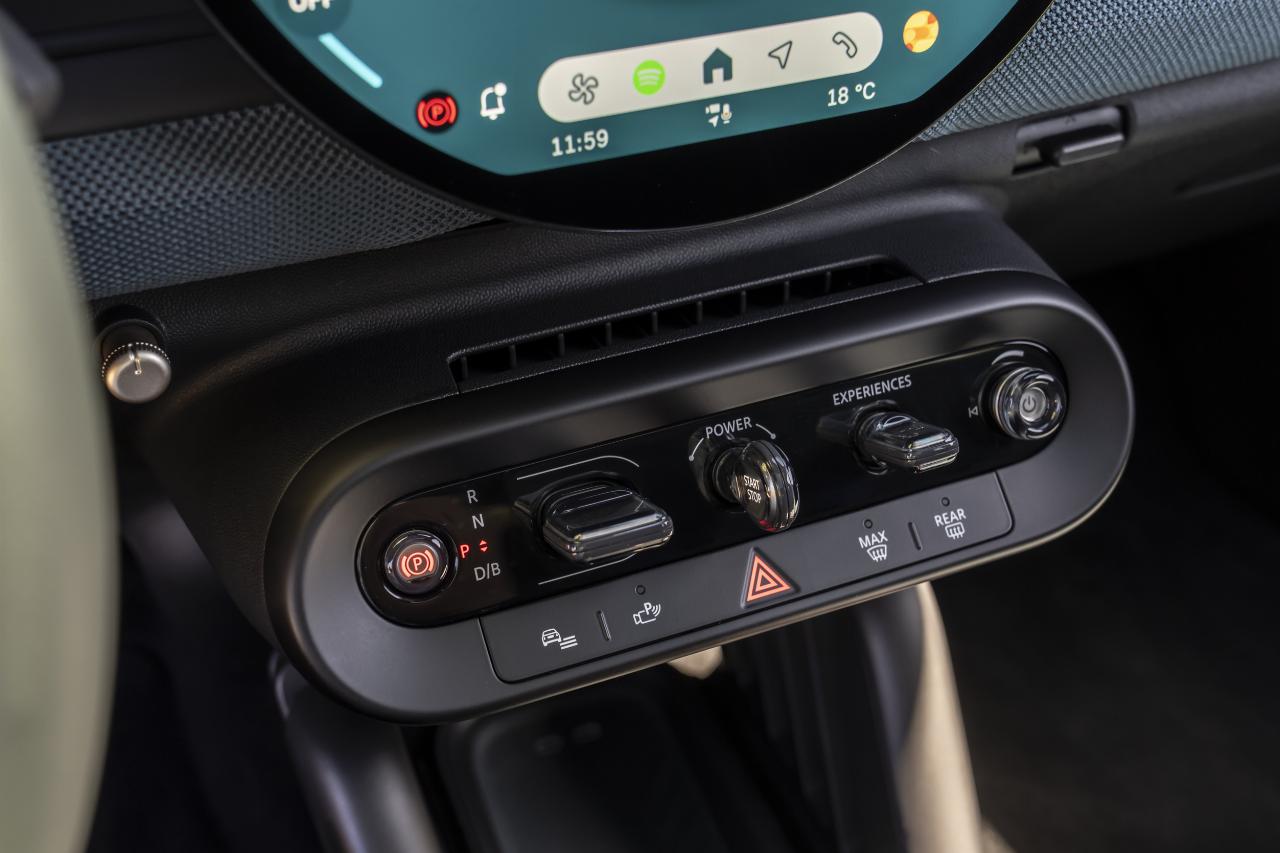 Umso mehr Funktionen sind auf dem Oled-Bildschirm konzentriert. Er hat die Größe einer Langspielplatte. Ein schönes Detail, erinnert er doch an den Tacho in der Mitte des Ur-Mini. Es gibt auch eine Retro-Darstellung, dann sieht er aus wie ein alter Tachometer. Wichtige Fahrdaten werden zusätzlich auf einer kleinen Scheibe vor dem Fahrer angezeigt. Man muss also nicht ständige den Kopf wenden, um zu sehen, wie schnell man fährt. Denn der Aceman kann auch schnell: Schon mit der Basismotorisierung von 135 kW (184 PS) geht es flott voran. Im SE sind es 160 kW (218 PS). Als Spitzenmodell John Cooper Works bringt es der Aceman dann auf 190 kW (258 PS) und reißt die Tempo-100-Marke nach 6,4 Sekunden. Ganz gut für ein 1700 Kilogramm schweres Auto. Der John Cooper Works erreicht eine Spitzengeschwindigkeit von 200 km/h, das schwächer Modell E wird hingegen bei Tempo 160 eingebremsr.