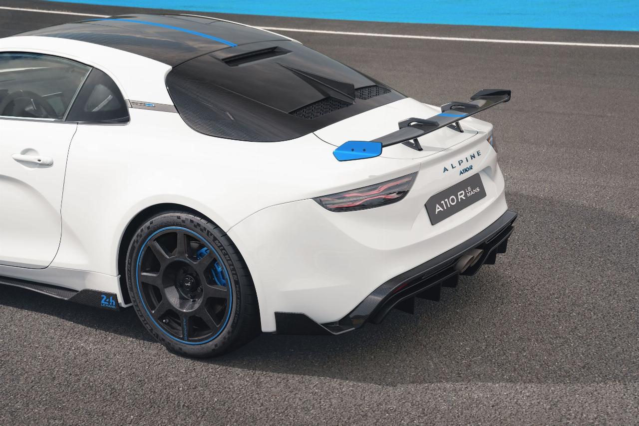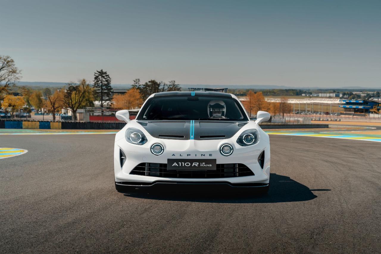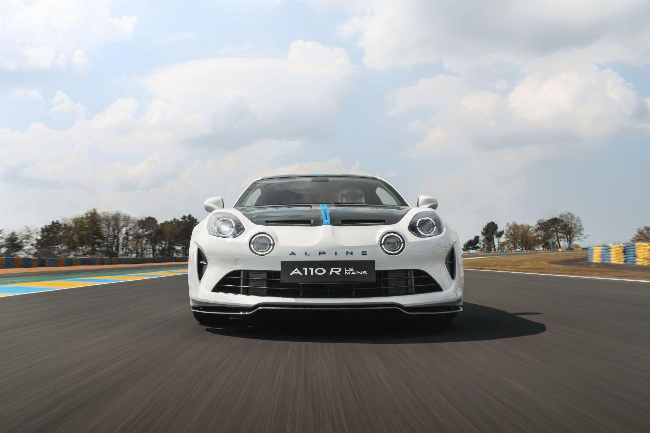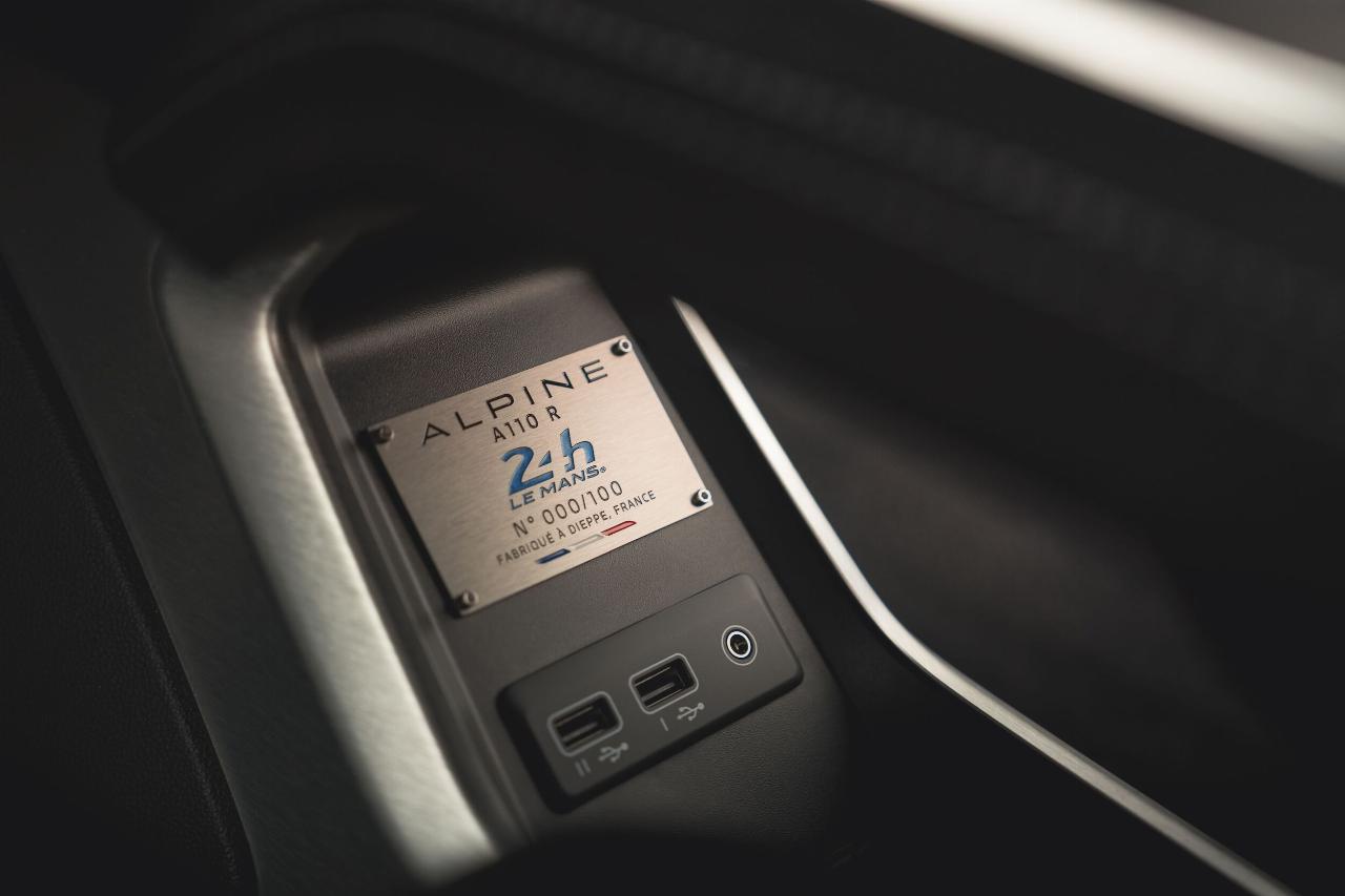 Das Sondermodell basiert auf dem A 110 R und verfügt über identische Karbonkomponenten sowie ein spezielles Fahrwerks-Setup. An den Frontspoilern, Seitenschwellern und Mikrofaser-Kopfstützen der Schalensitze findet sich die offizielle Le-Mans-Signatur. Als weitere Referenz an den Langstreckenklassiker ist das Layout der Rennstrecke in der Sonnenblende eingraviert. Jedes Fahrzeug trägt in der Mittelkonsole eine nummerierte Plakette.