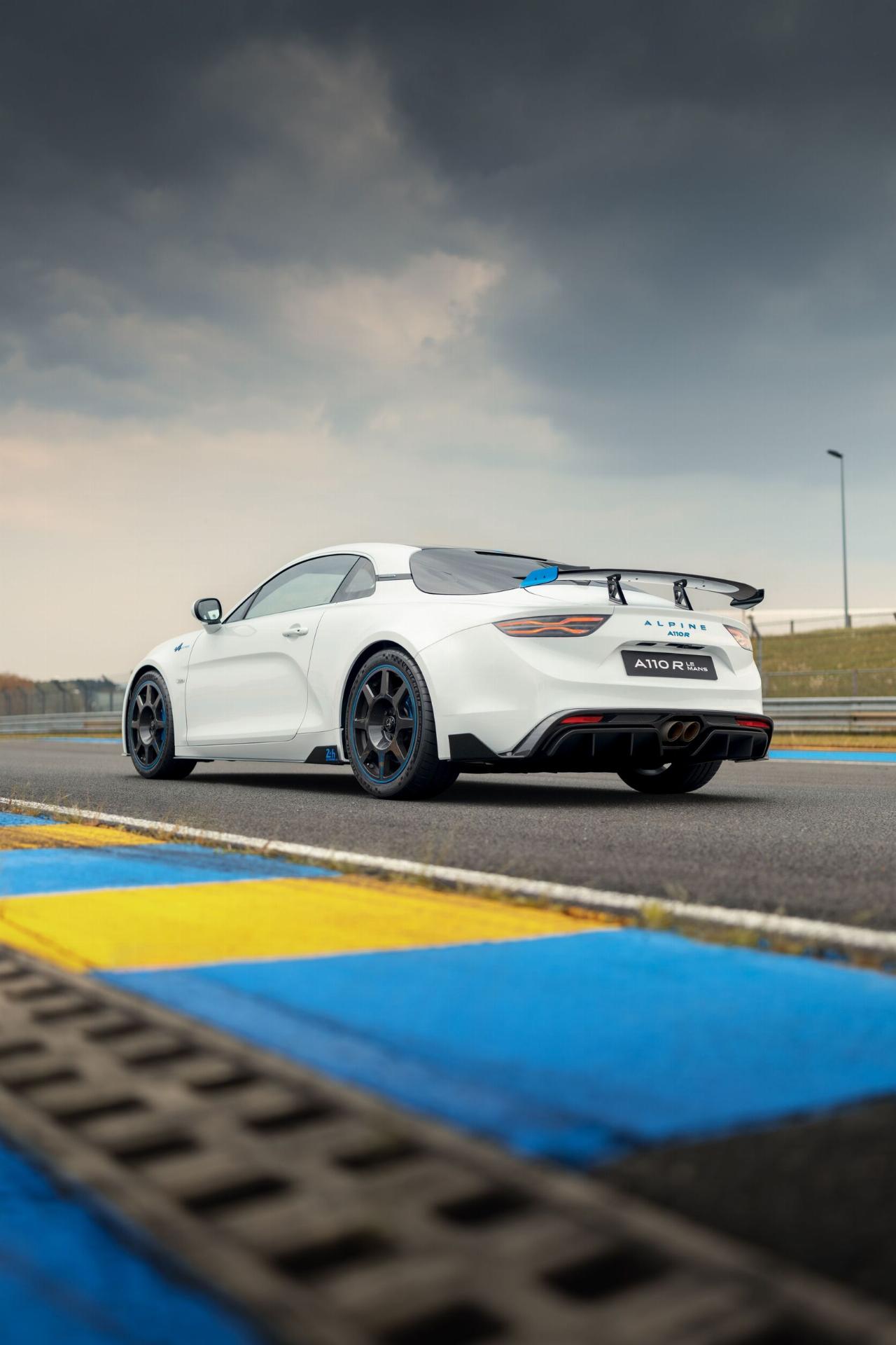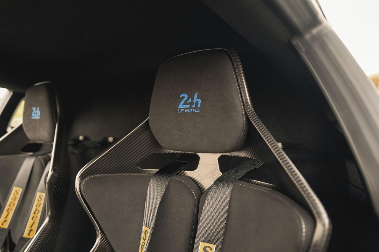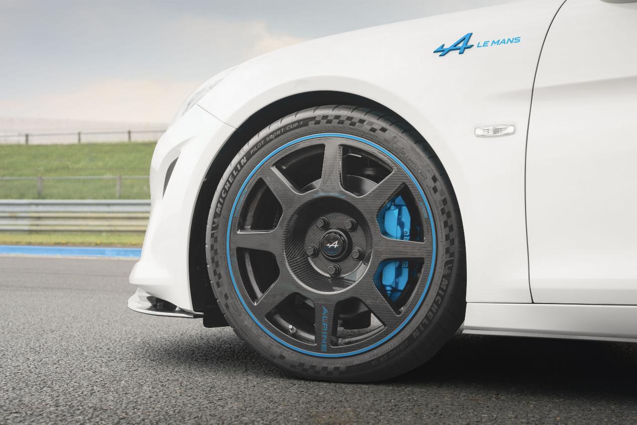 Das Sondermodell basiert auf dem A 110 R und verfügt über identische Karbonkomponenten sowie ein spezielles Fahrwerks-Setup. An den Frontspoilern, Seitenschwellern und Mikrofaser-Kopfstützen der Schalensitze findet sich die offizielle Le-Mans-Signatur. Als weitere Referenz an den Langstreckenklassiker ist das Layout der Rennstrecke in der Sonnenblende eingraviert. Jedes Fahrzeug trägt in der Mittelkonsole eine nummerierte Plakette.