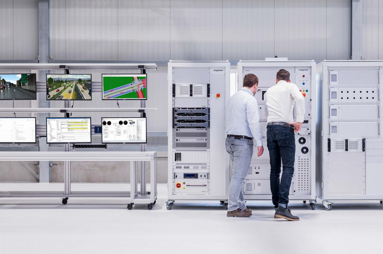 Die 750 Quadratmeter Hallenfläche des Gebäudes bieten Raum für den Aufbau weiterer HIL-Prüfumgebungen zur Funktions- und Gesamtsystemabsicherung sowie für die Überprüfung von Software-Funktionalitäten in der direkten Fahrzeugumgebung. Auch für die Arbeit an Prototypen steht in dem neuen Gebäude eine große Fläche zur Verfügung. Gleichzeitig werden für die Mitarbeiter optimale Bedingungen für ihre Arbeit im Büro geschaffen.