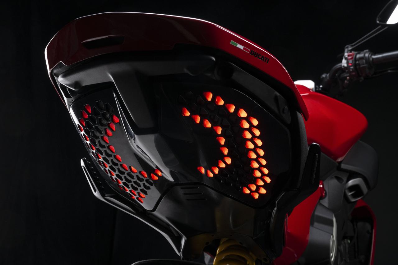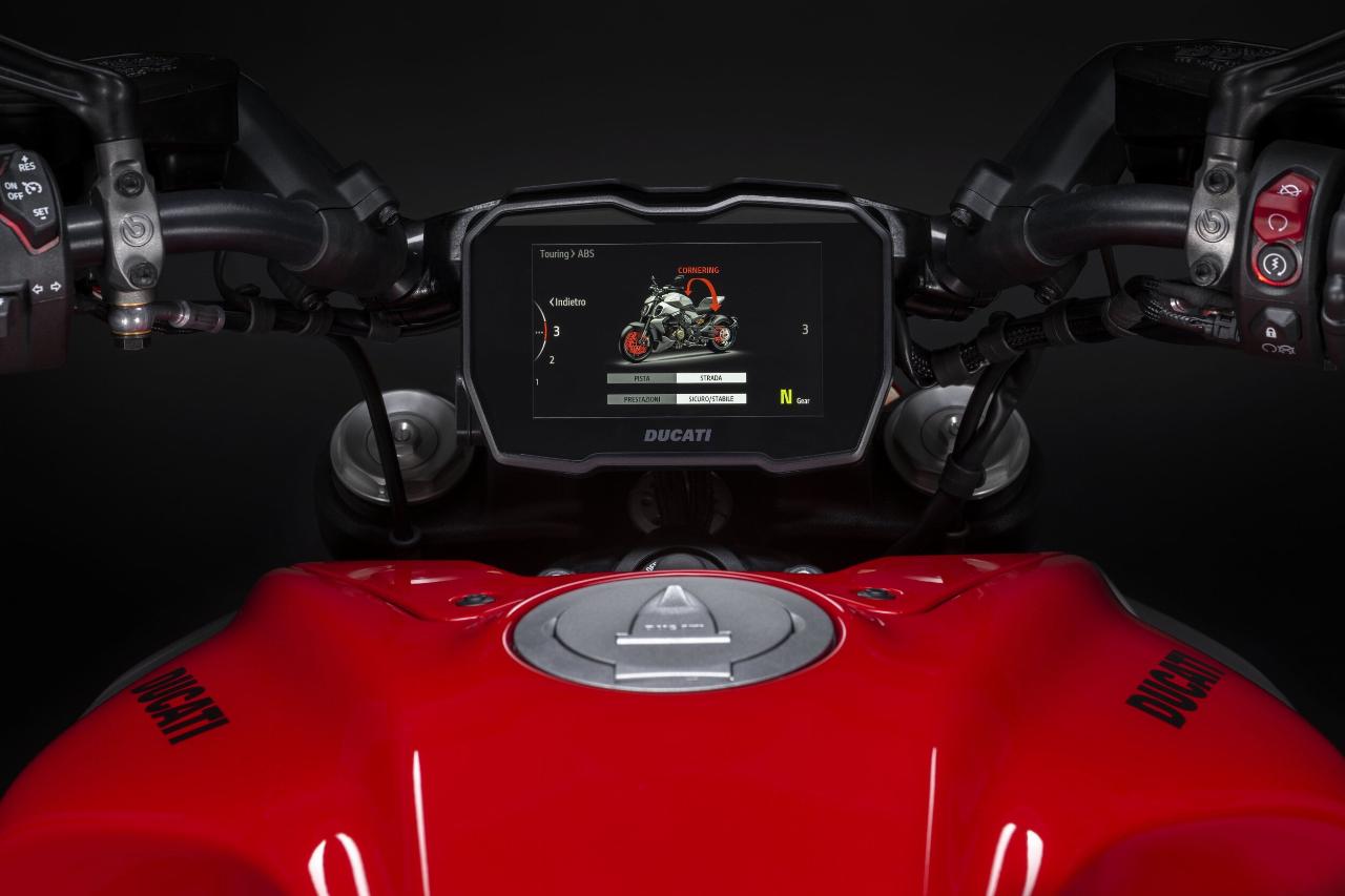 Die V4 bietet neben drei Power Modes vier Riding Modes, darunter die neue Stufe Wet für Untergründe mit weniger Grip. Ausgestattet ist die Ducati unter anderem mit einer Geschwindigkeitsregelanlage, Quickshifter und Launch Control sowie einem neuen Fünf-Zoll-TFT-Farbdisplay, das sich auch mit dem Smartphone koppeln lässt. Eine Turn-by-Turn-Navigation ist als Zubhör über die Ducati-Link-App möglich.