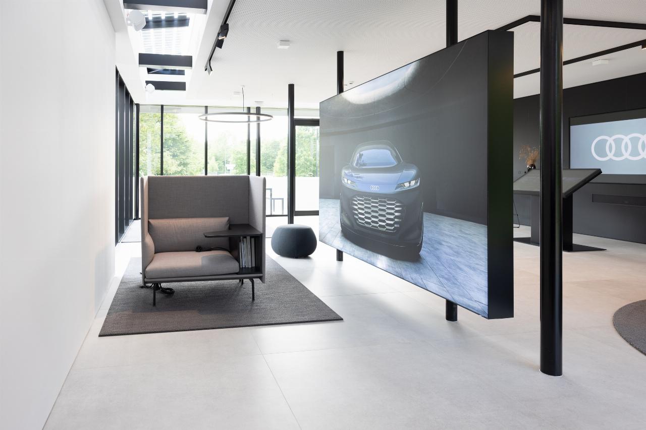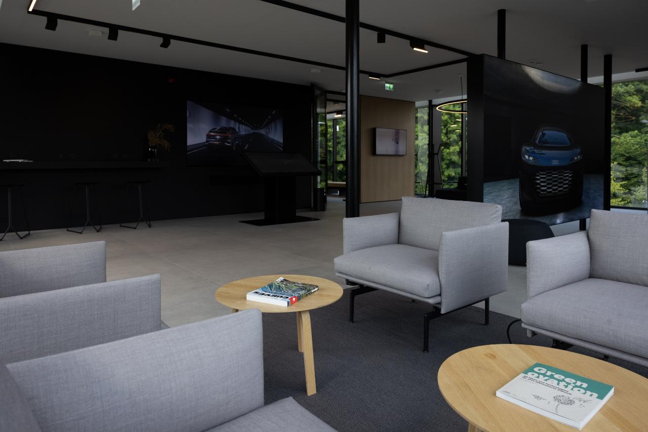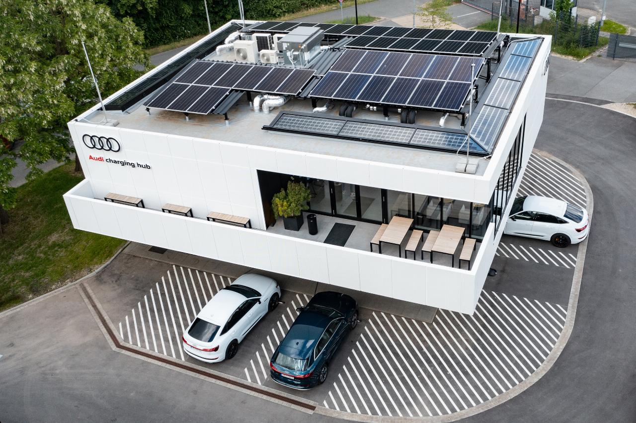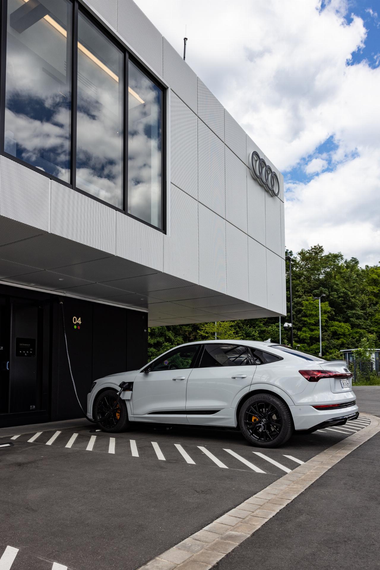 Die im Vergleich zu Nürnberg kompaktere Variante des Audi Charging Hub in Zürich basiert ebenfalls auf dem Baukastenprinzip, nach dem sich verschiedene Größen eines Ladehubs mit und ohne Lounge realisieren lassen. (aum)